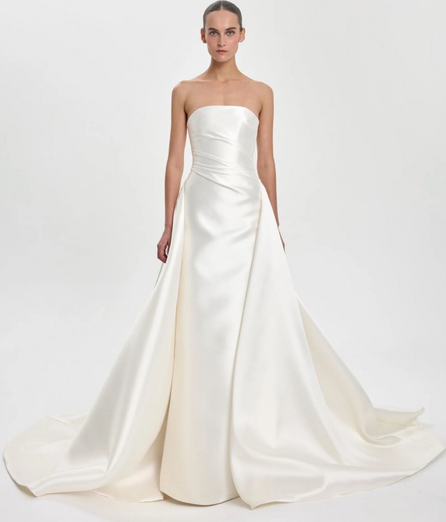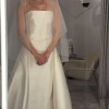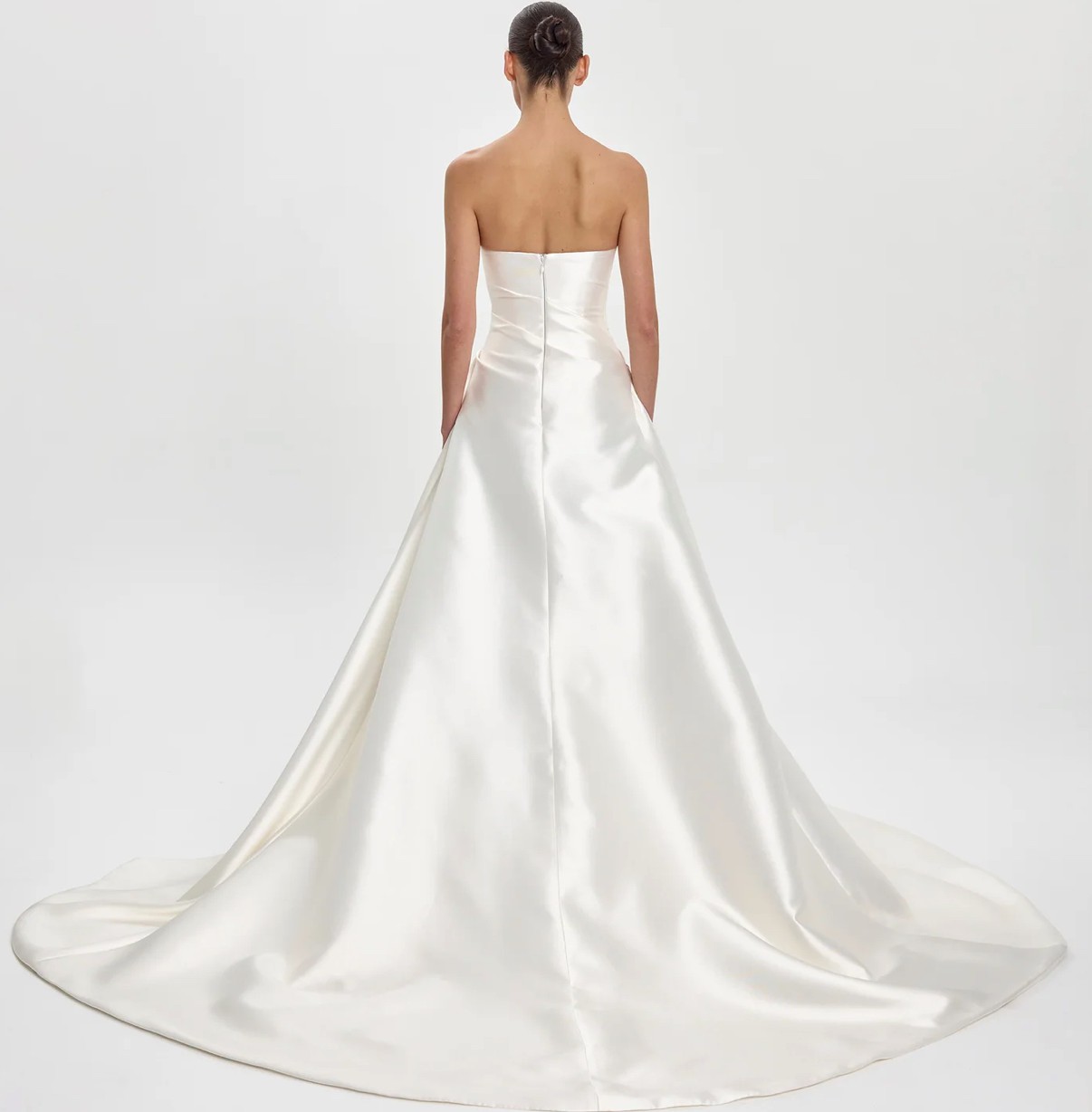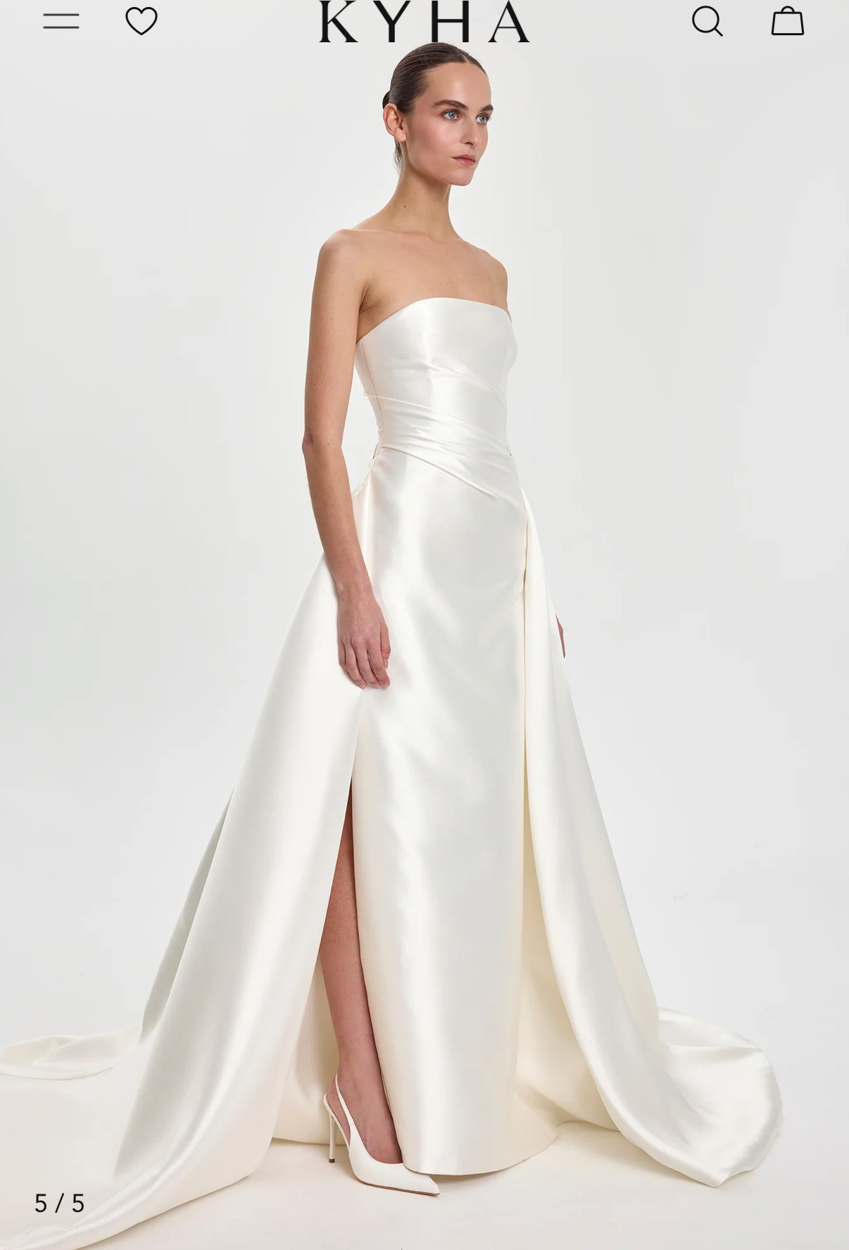 I purchased this gorgeous Ellery gown from Khya Bridal Studio that has a column silhouette in the front with an attached over skirt for an A-Line fullness which originally sold me on it. The dress is truly stunning and timeless. I don’t know if anyone else has been in the business of acquiring a bunch of white dresses but I have two and I ultimately decided on my other one. This is ready for pick up on April 15th from NYC. Happy to have you for try ons and recommend the tailor from the bridal studio. Also including a very simple very chic trimless veil that matches the dress!! (Last photos)