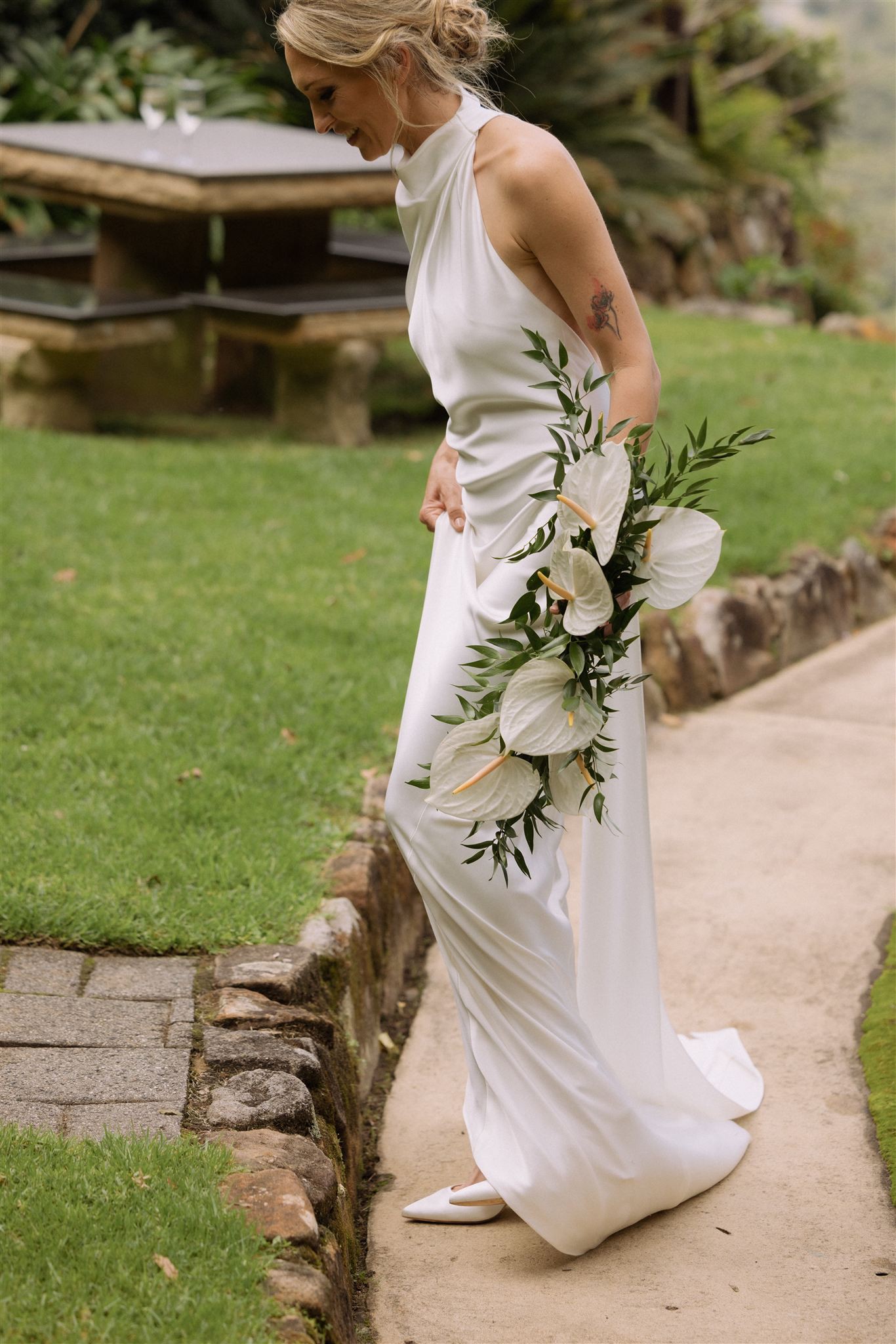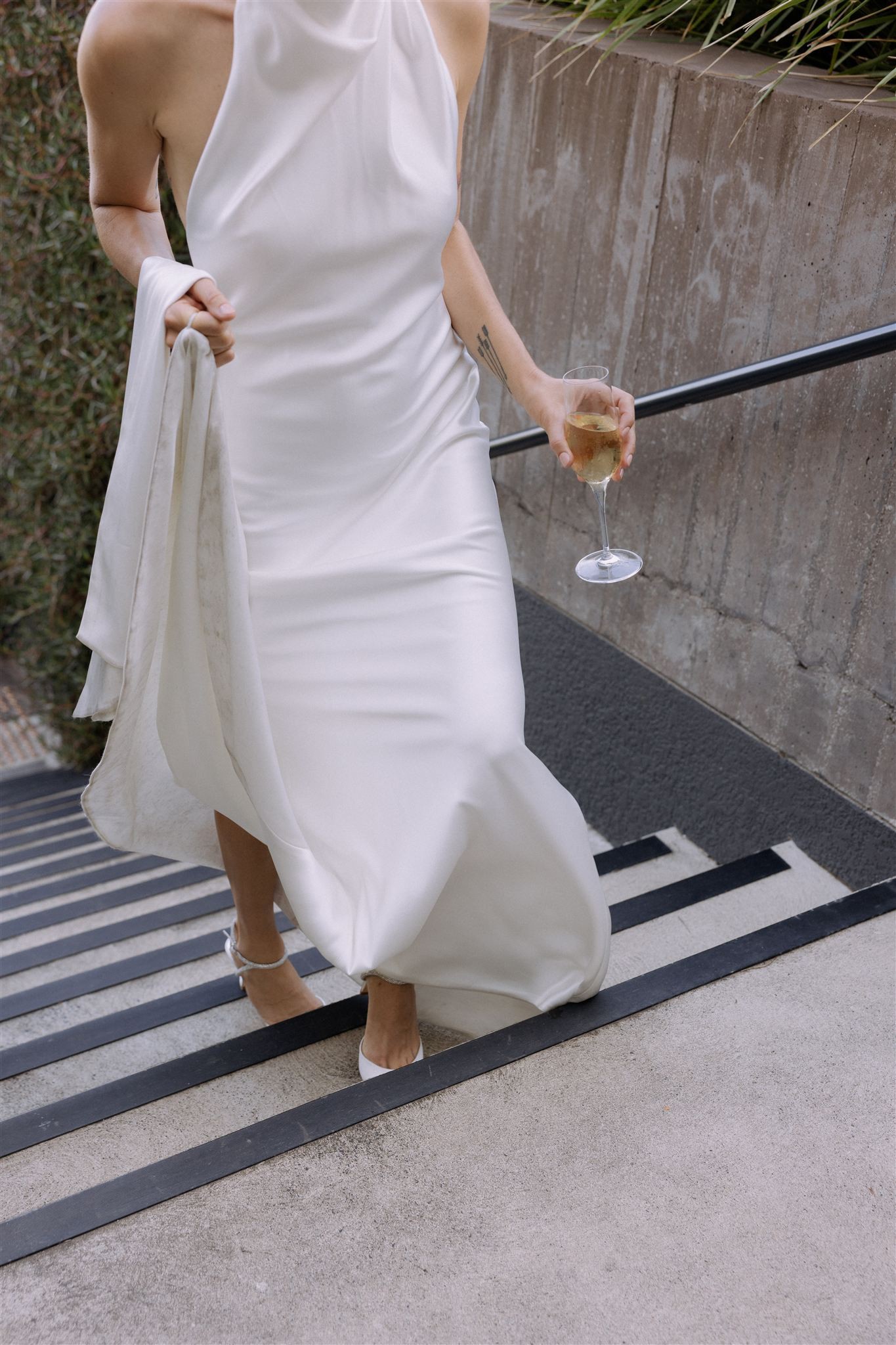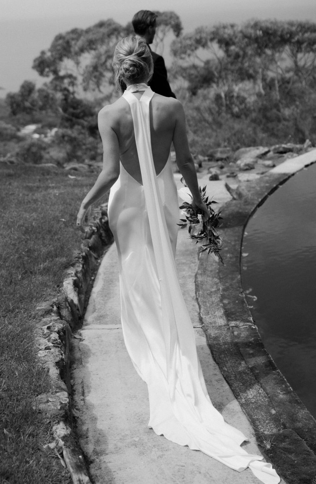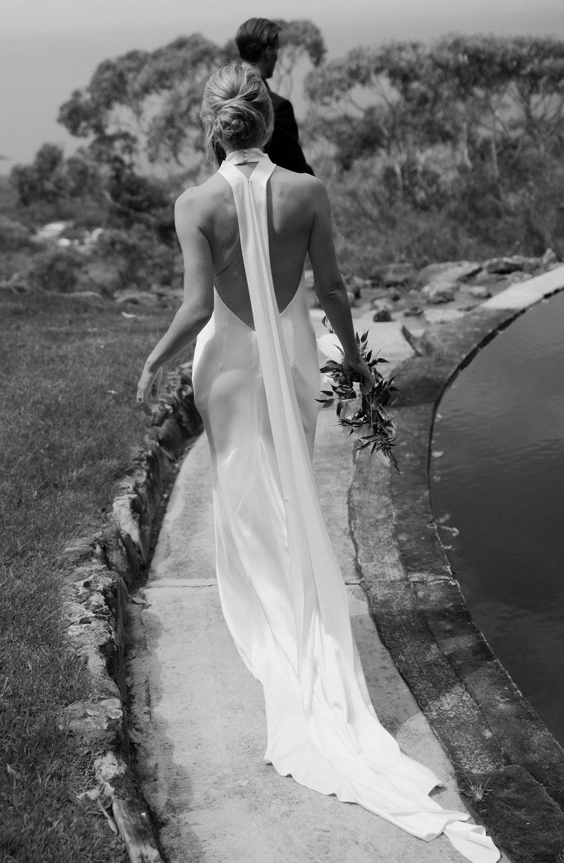 KYHA Studios description: For minimalism with main character energy meet Cameron. Fluid draping from the halter neck falls effortlessly into a relaxed silhouette. Crafted from satin triacetate, Cameron’s showstopping low back is celebrated via its long ties at the neck.