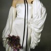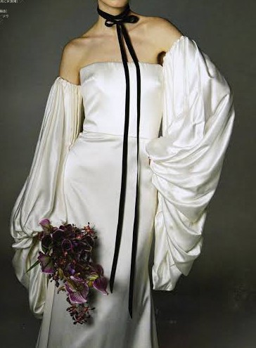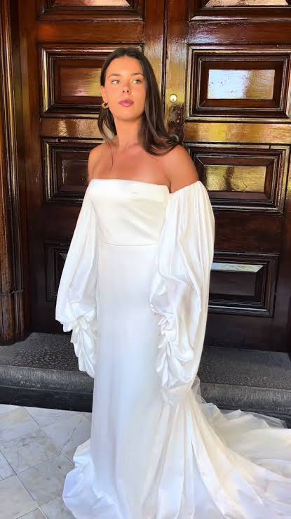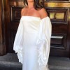 Light Ivory Silk Charmeuse Strapless Gown with Exaggerated off the shoulder blouson sleeves