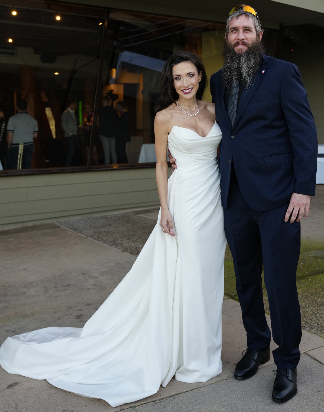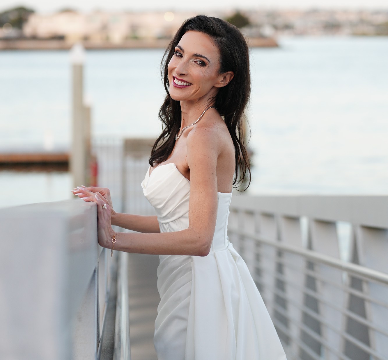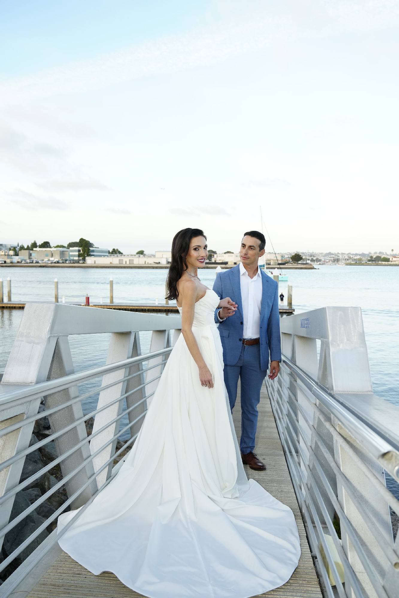 She is the moment, she is Huntleigh, a dress i loved so much I wore it to my rehearsal dinner as it was not appropriate for my wedding venue. I drove 3 hours just to try her on and couldn't get her out of my mind. She is a gorgeous crepe material that was both extremely comfortable and flattering. I didnt want to take her off at the end of the day! The dress worked in every photo, every position and was a favorite of family and friends! The overskirt itself was not altered beyond tacking to help it fit perfect around the waist. Grab this chance to be this iconic dress at a fraction of the price!