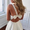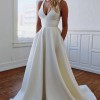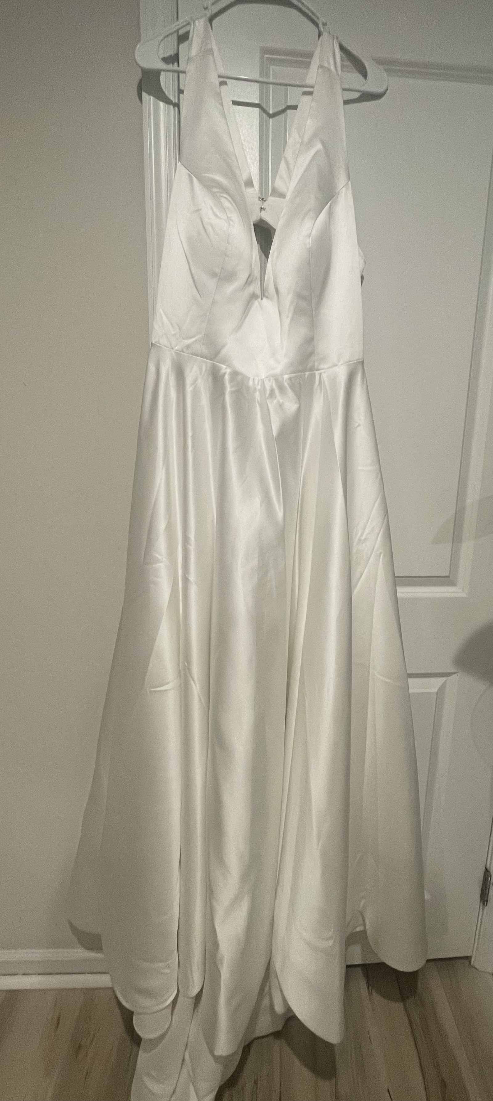Price doesn’t include shipping. This stunning A-Line wedding dress is the epitome of elegance and grace, designed to make any bride feel like the center of attention on her special day. Size 16W, this floor-length gown features a sophisticated V-neckline that beautifully frames the décolletage and a sweet back design framed with a bow.