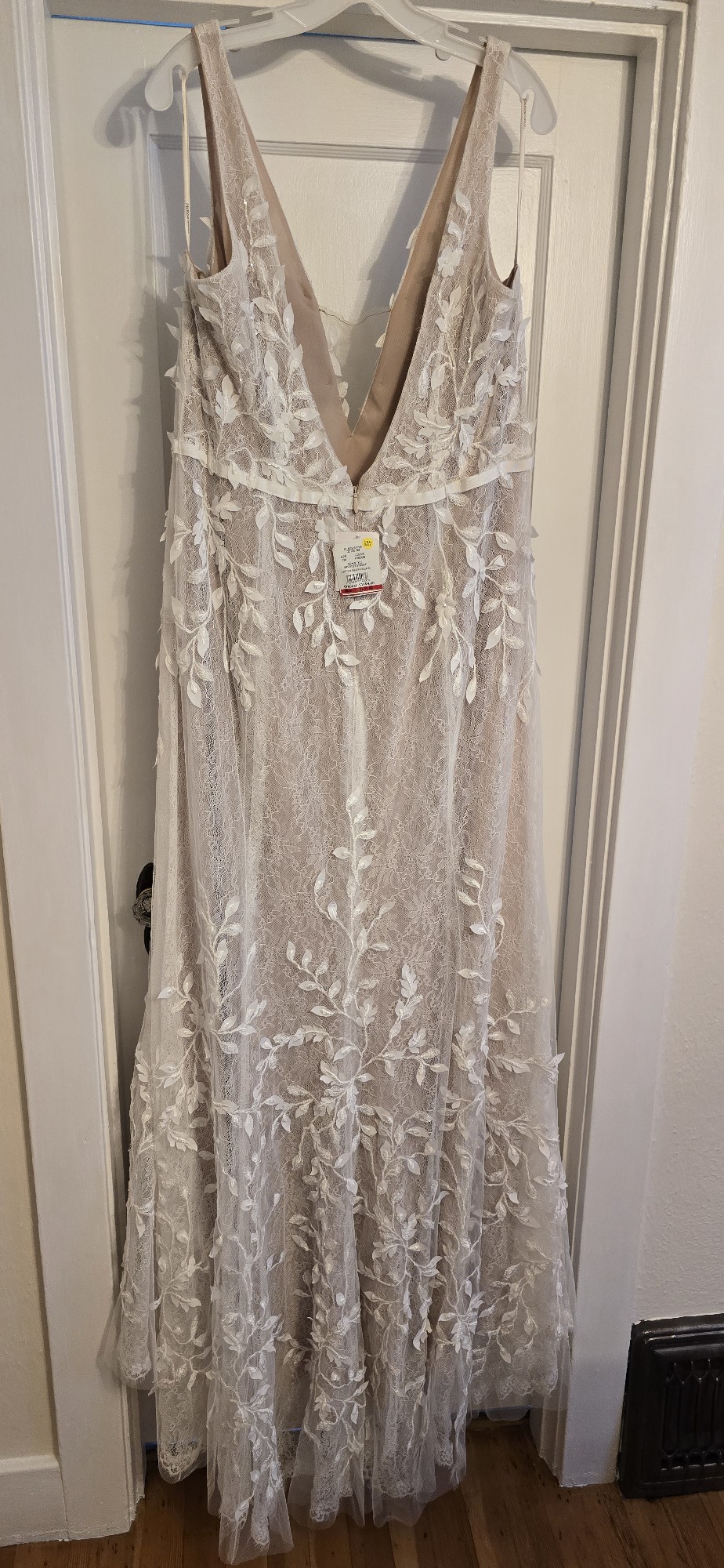 3D Leaves Applique Lace Plus Size Wedding Dress