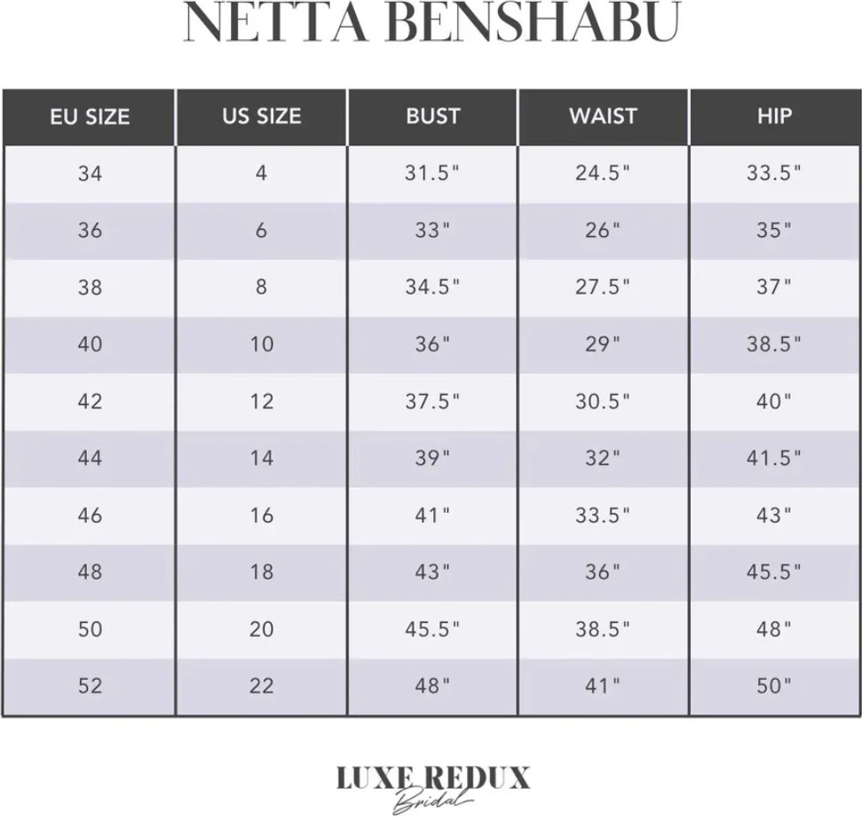 This Madison dress by designer Netta BenShabu is an enchanting embodiment of romance and elegance. Crafted for the modern bride who seeks a blend of classic charm and contemporary flair, the A-line silhouette gracefully flows from the sweetheart neckline, accentuating the décolletage while providing a flattering fit. The strapless design showcases the shoulders and collarbone, ensuring every movement radiates confidence and sophistication.