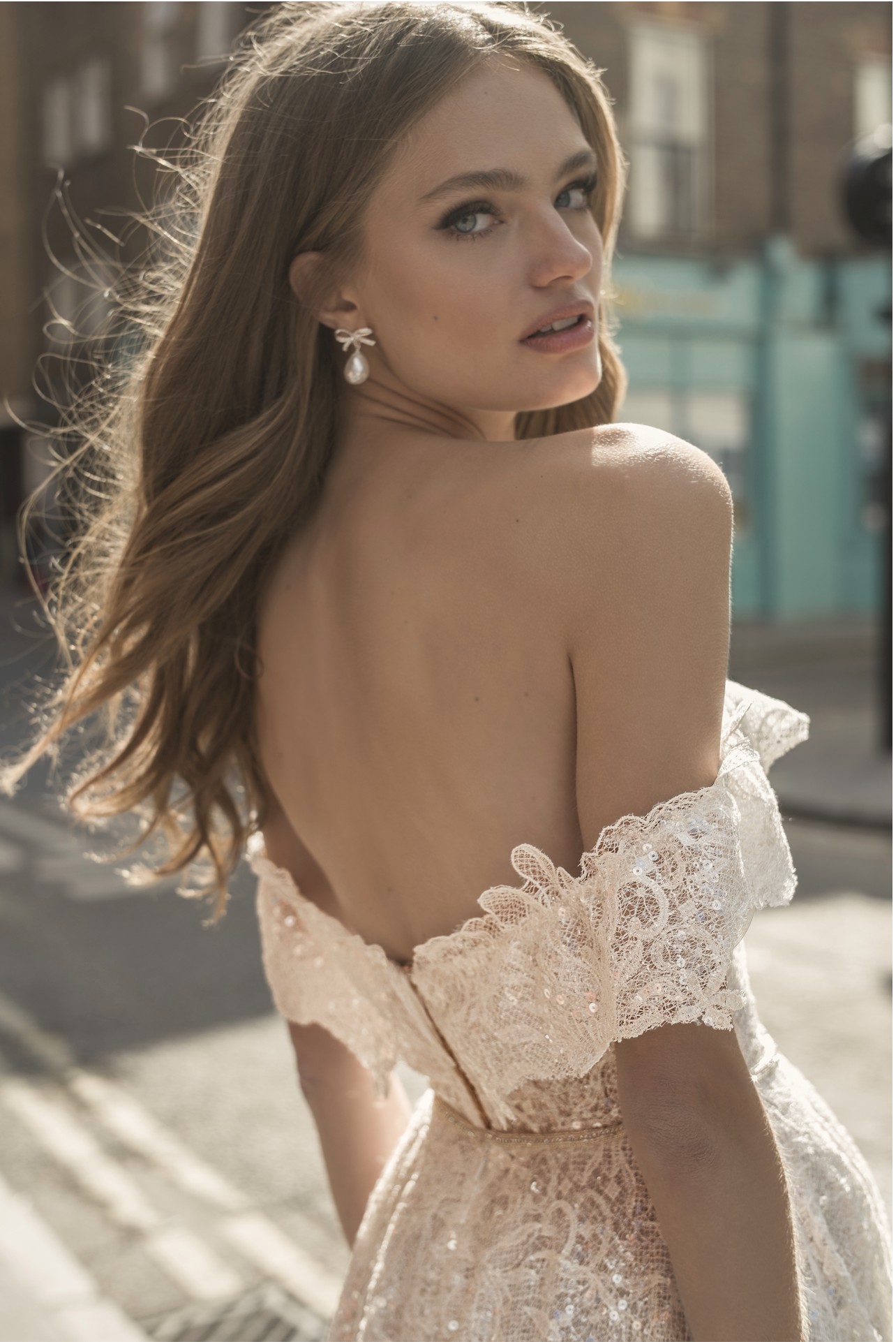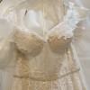 With its low back, the Madison offers a touch of allure, perfect for turning heads as you glide down the aisle. The floor-length hem creates a striking effect, allowing you to experience the magical elegance of lace and delicate fabrics as you celebrate your union. This size 14 gown gracefully complements a range of body types, ensuring comfort and style throughout your special day.