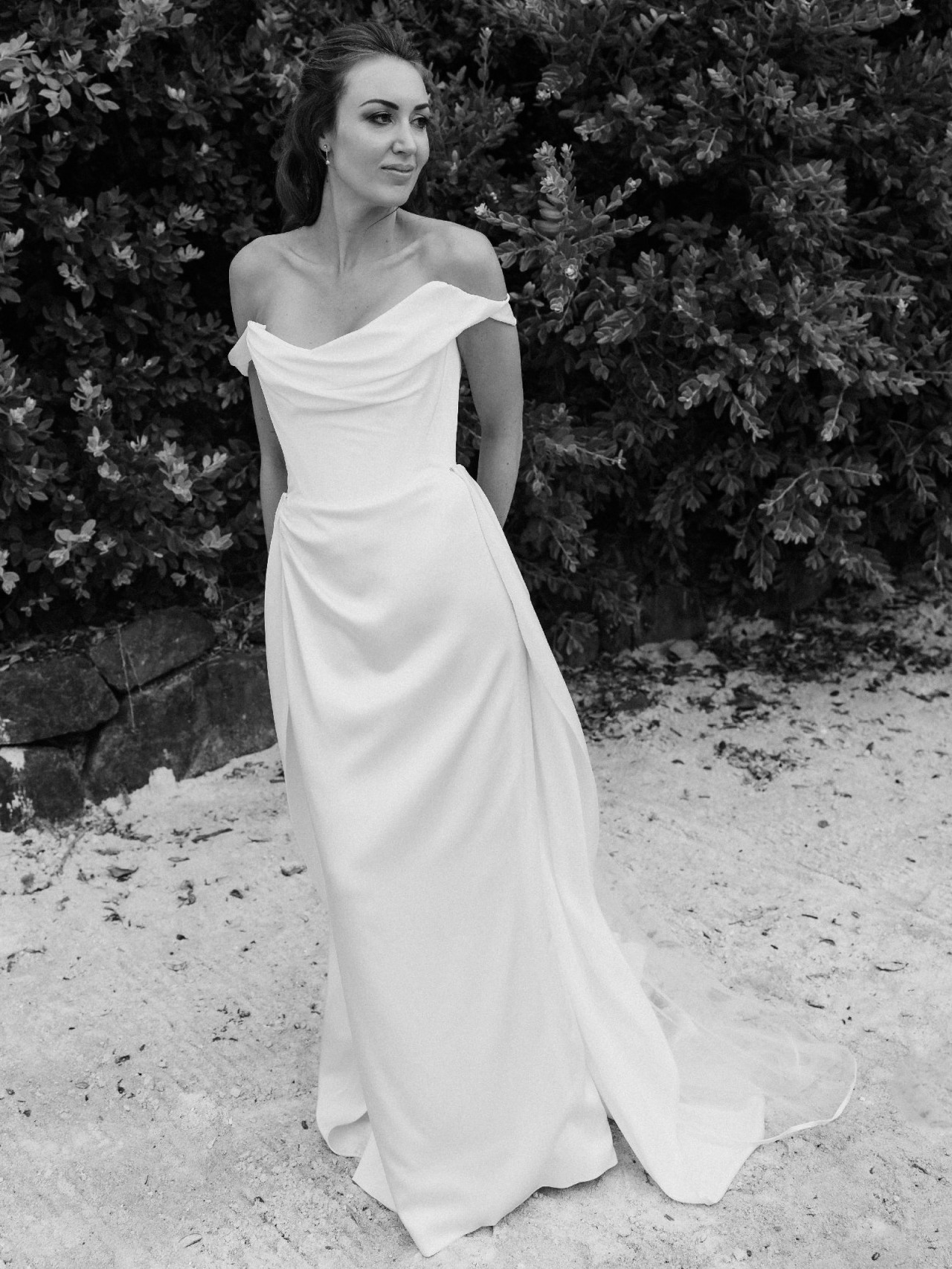 - Asymmetric, beautifully draped neckline