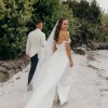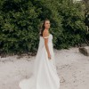 This is such a statement gown - modern but romantic, dramatic yet refined. The detachable train allows you to transform your look from ceremony to reception effortlessly.