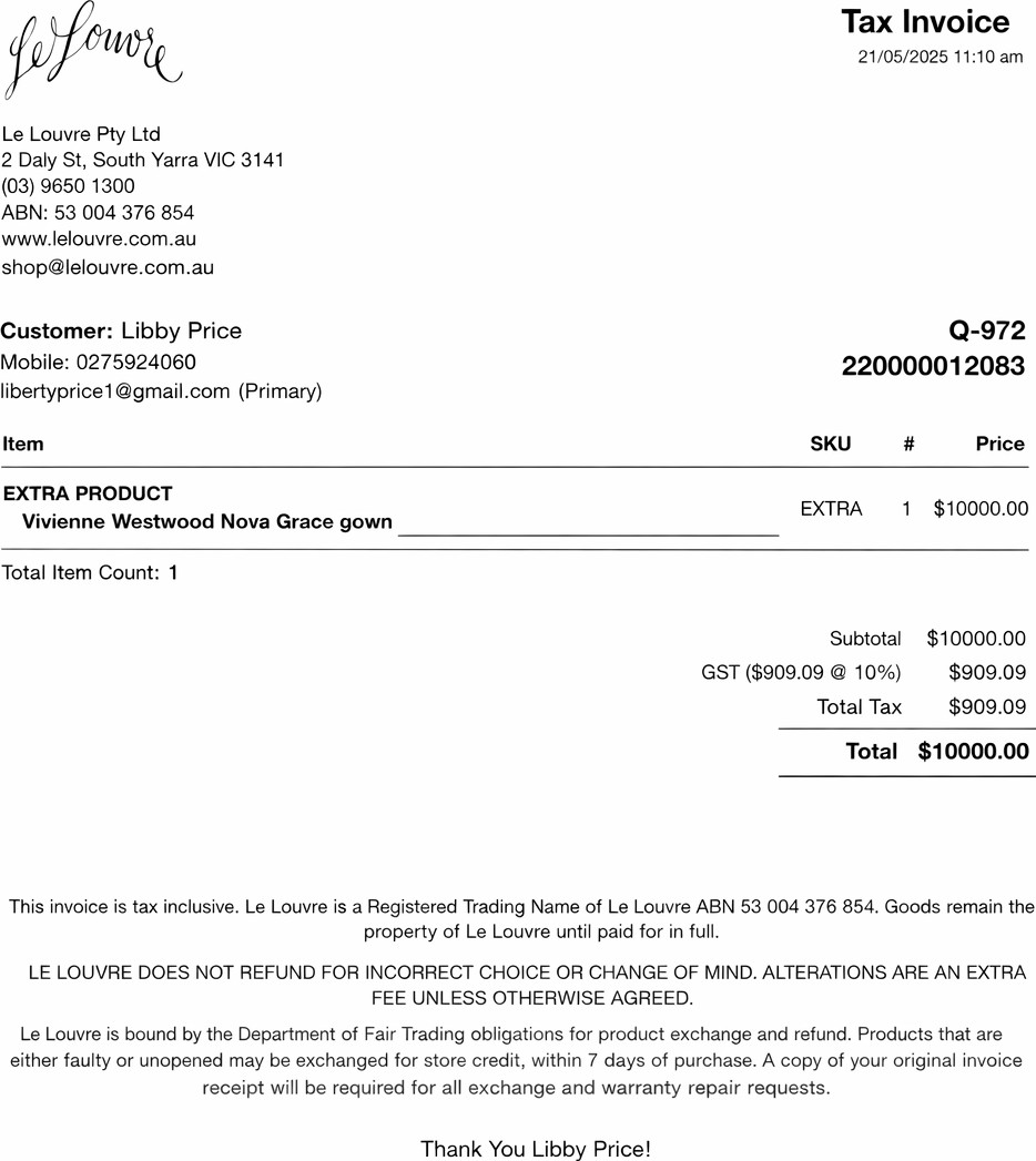 Purchased from Le Louvre Bridal, Melbourne, this iconic design remains one of the most sought-after silhouettes.