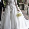 Suitable for size 10 but can vary between 10 -12. Veil and detachable sleeves included.