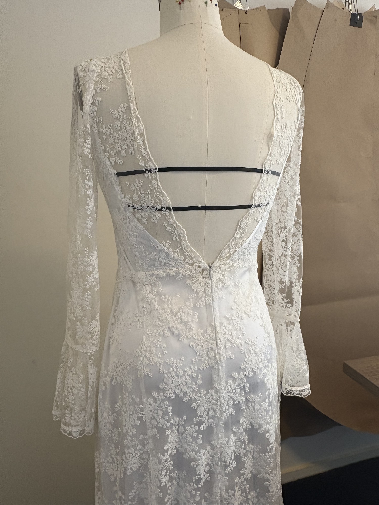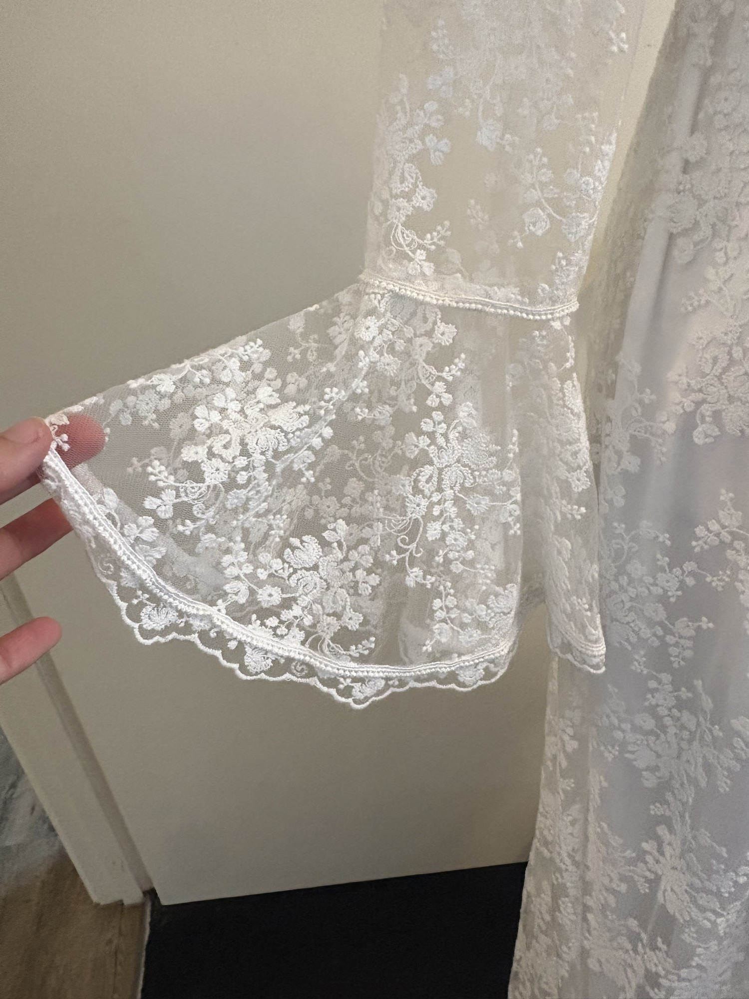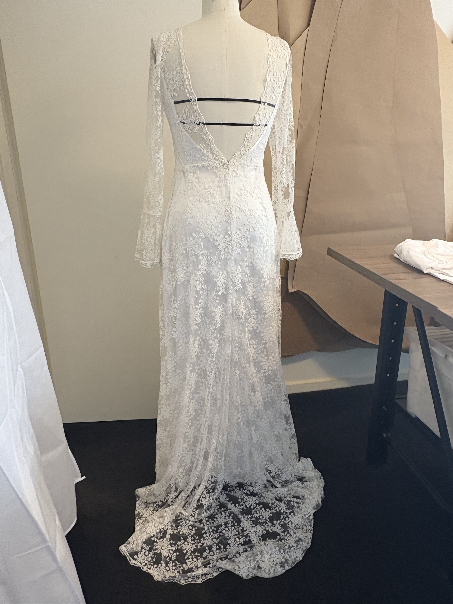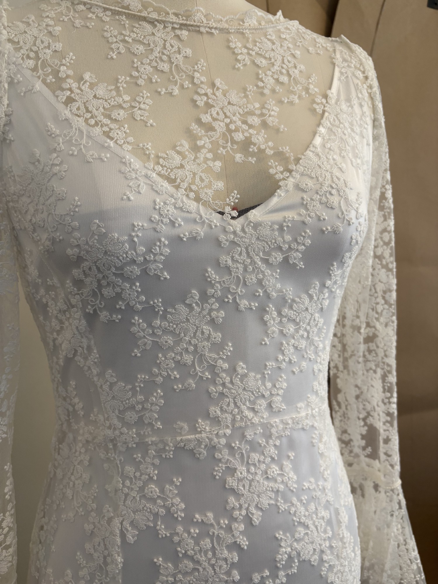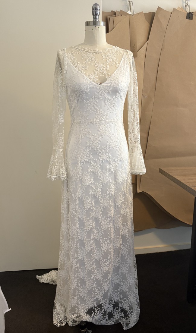 THE DETAILS: An original lace overdress gown with satin slip. Slip could be worn as a second look. Gown fits firmly on my size 12 dress form (measurements in images). Is in immaculate condition. No marks or stains.