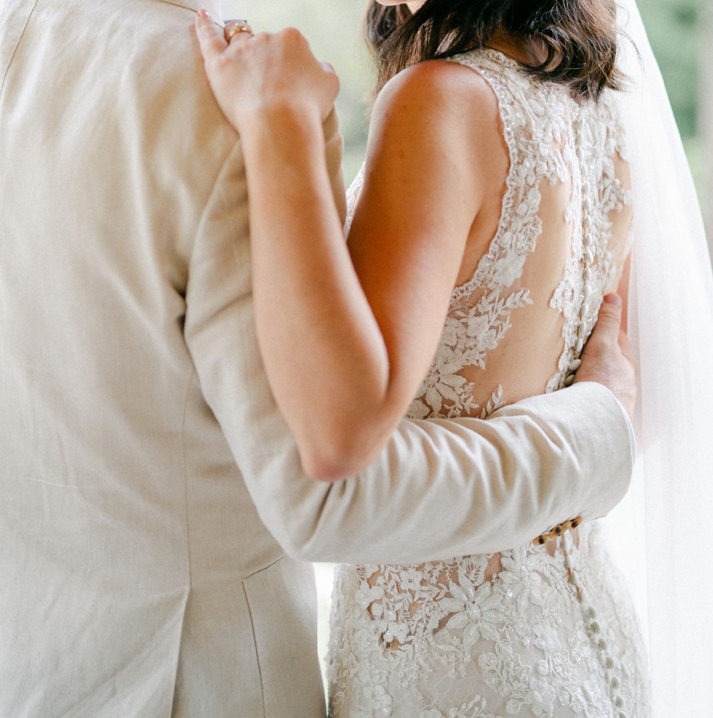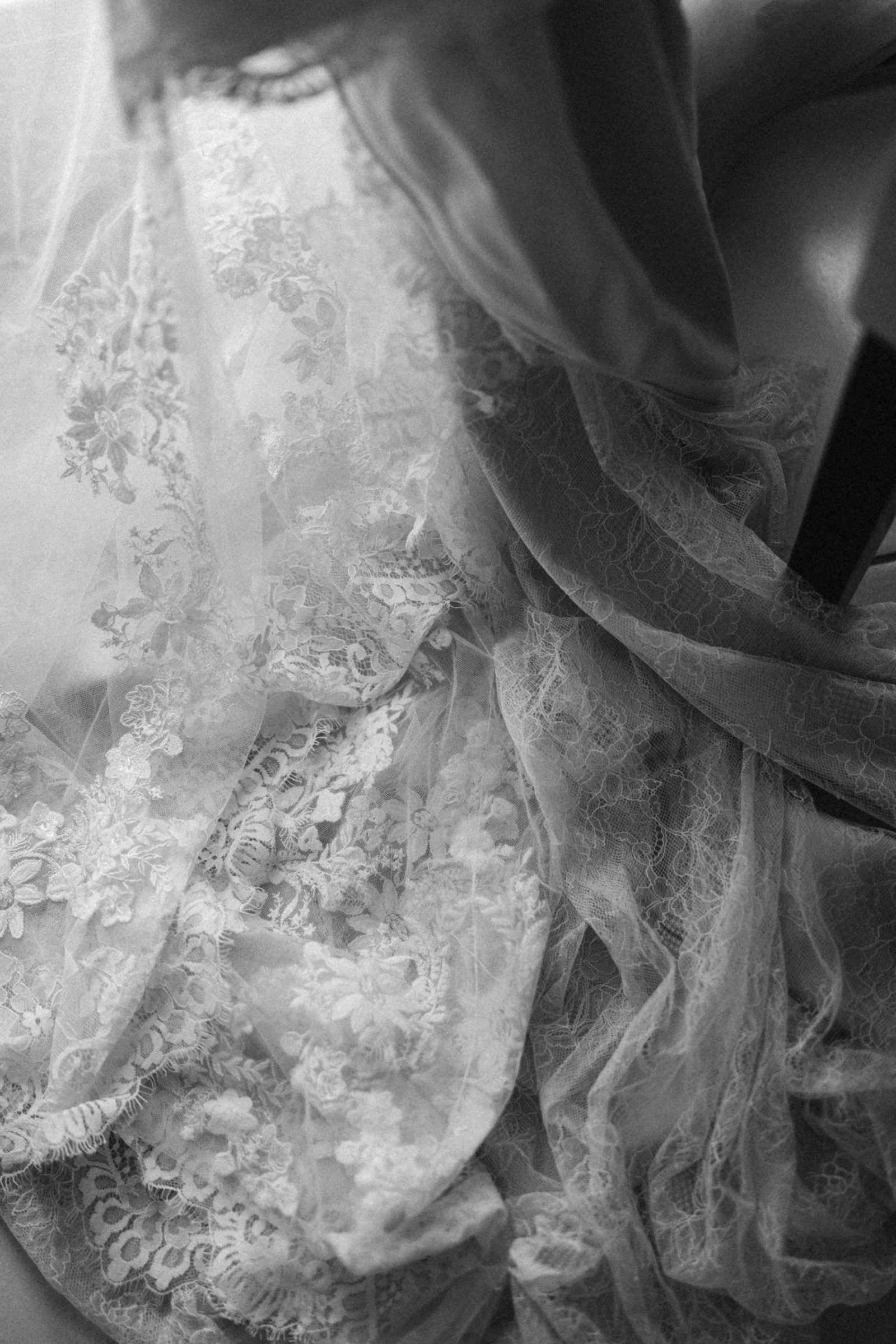 - French and eyelash laces on hem and neckline for a touch of old-world charm