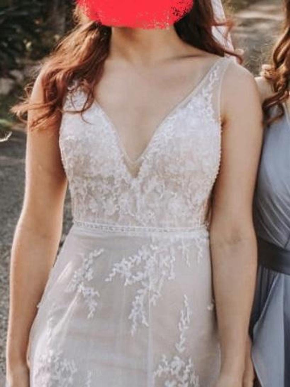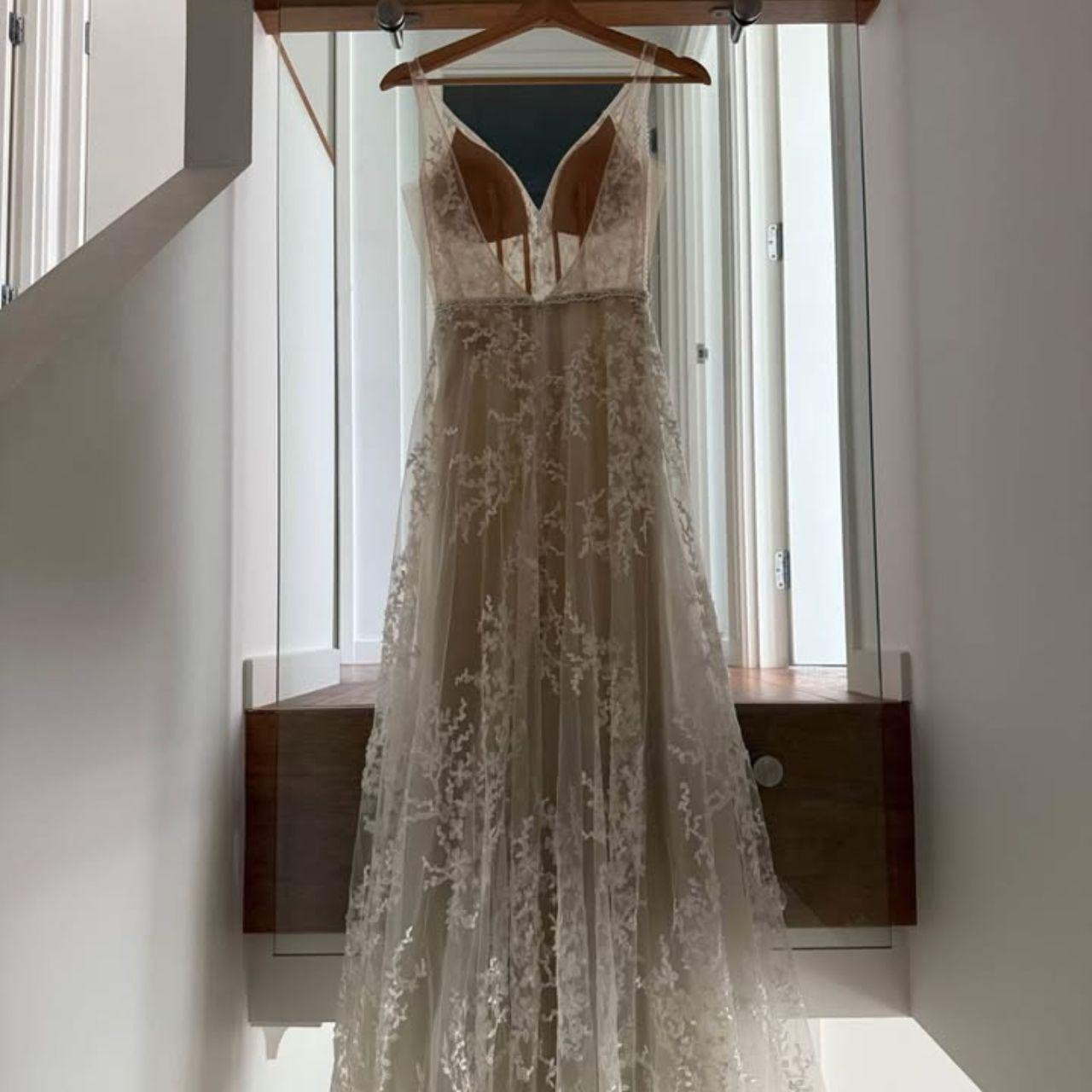 Wedding Dress - Creamy off white. Floral and small beaded detailing. Designed for someone around size 8, and 163cm tall and with a 10D cup. Has a bit of a train.