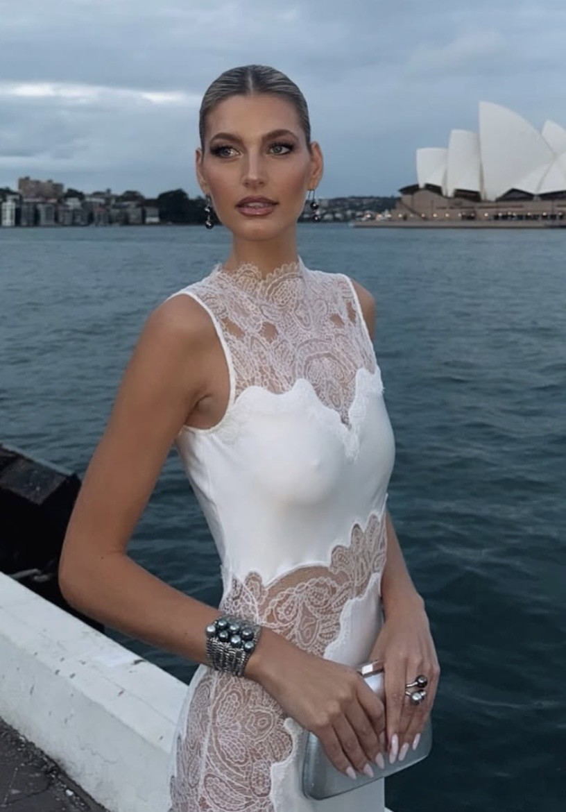 Combines the refined texture and soft drape of the matte shine satin with the delicate, intricate details of the lace, creating a sophisticated contrast that adds elegance and a feminine touch.