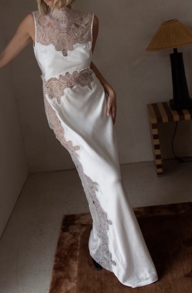 Shona Joy, Stratus Lace High Neck Maxi Dress in Ivory