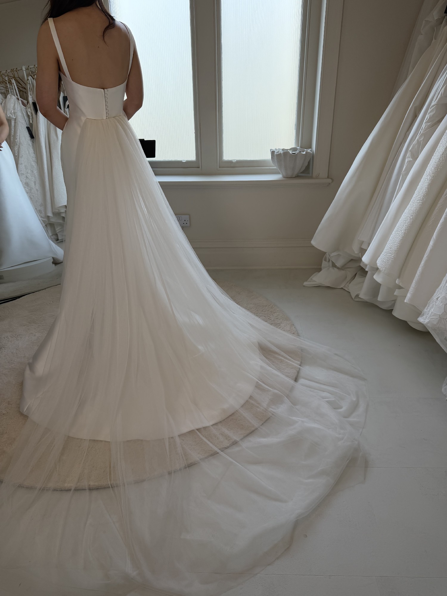 This can be taken out by 1 dress size and taken in by two dress sizes - we work in cm's and not inches. We also have an in house seamstress so can advise on any alterations you plan to make first hand. Please provide accurate measurements as all dresses are non refundable. As the new season approaches we are making space for new dresses. If you have any questions at all please contact the bridal studio direct or send us a message.