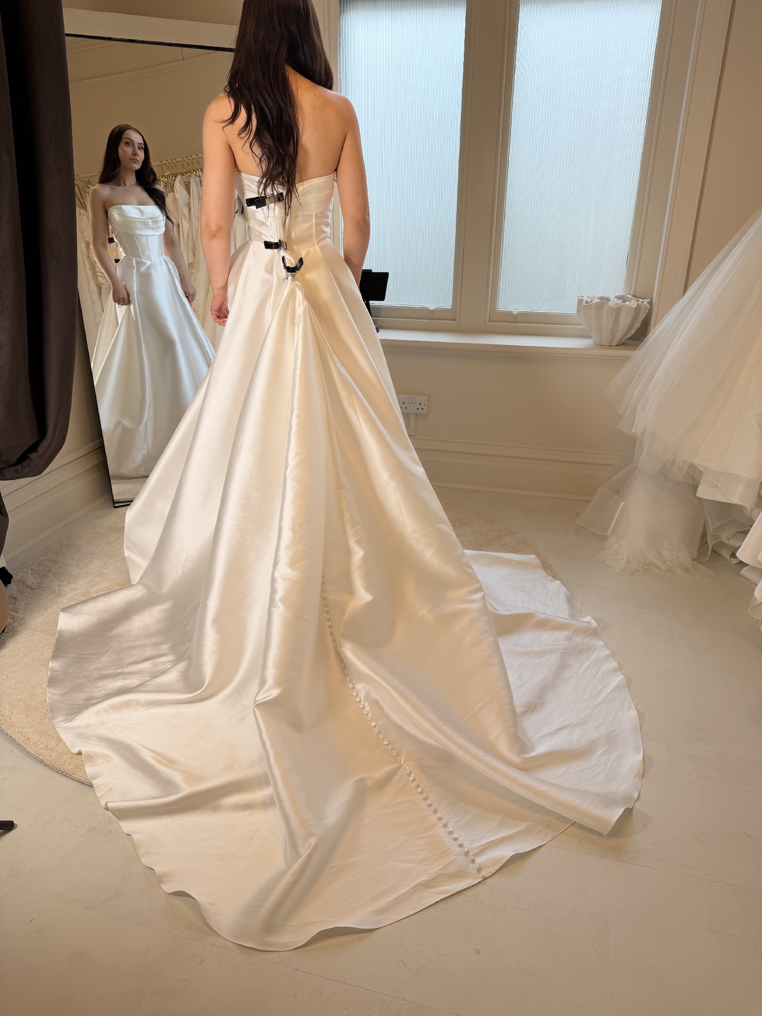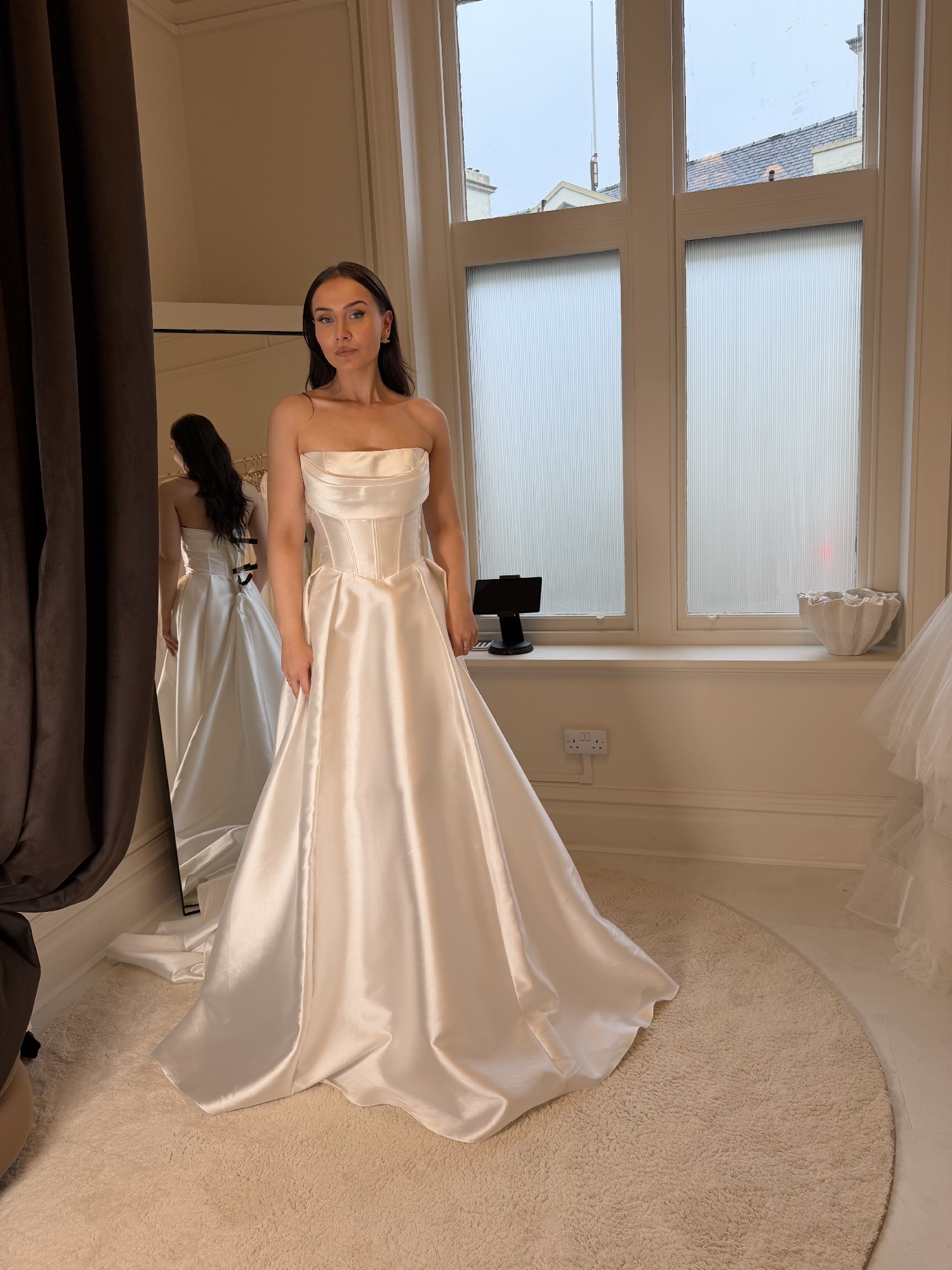 This can be taken out by 1 dress size and taken in by two dress sizes - we work in cm's and not inches. We also have an in house seamstress so can advise on any alterations you plan to make first hand. Please provide accurate measurements as all dresses are non refundable. As the new season approaches we are making space for new dresses. If you have any questions at all please contact the bridal studio direct or send us a message.