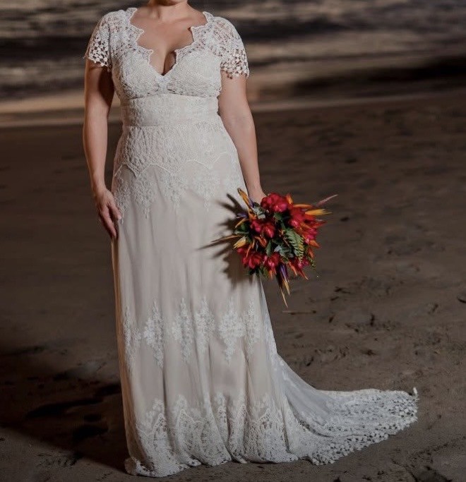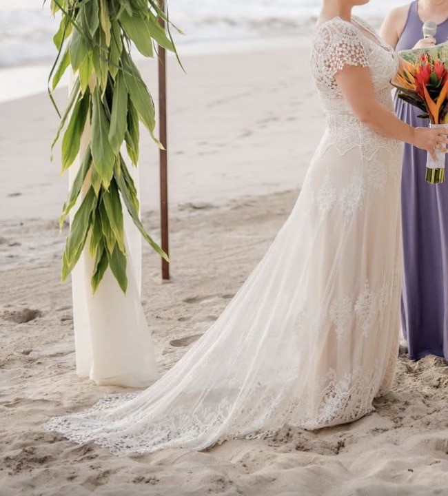 After my magical day wearing this stunning gown, I want to pass it on to another bride who will create her own beautiful memories. It's in excellent condition, was professionally cleaned, and ready for its new owner. If you're looking for a dress that combines elegance and romance perfectly, this is the one.