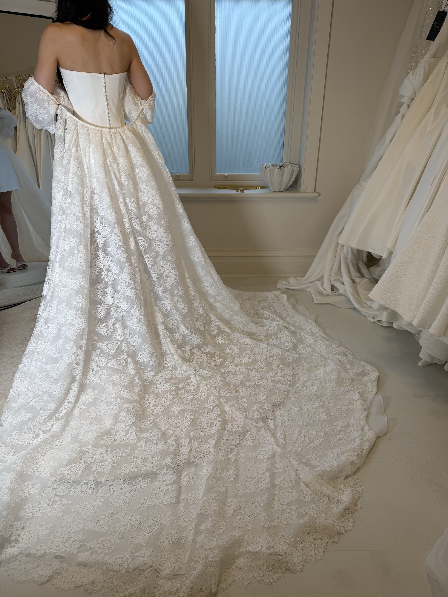This can be taken out by 1 dress size and taken in by two dress sizes - we work in cm's and not inches. We also have an in house seamstress so can advise on any alterations you plan to make first hand. Please provide accurate measurements as all dresses are non refundable. As the new season approaches we are making space for new dresses. If you have any questions at all please contact the bridal studio direct or send us a message.