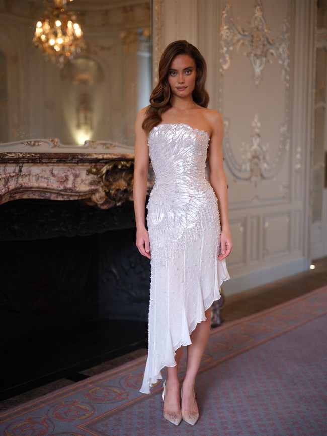 Occasion: Perfect for modern ceremonies, destination weddings, or a statement reception look