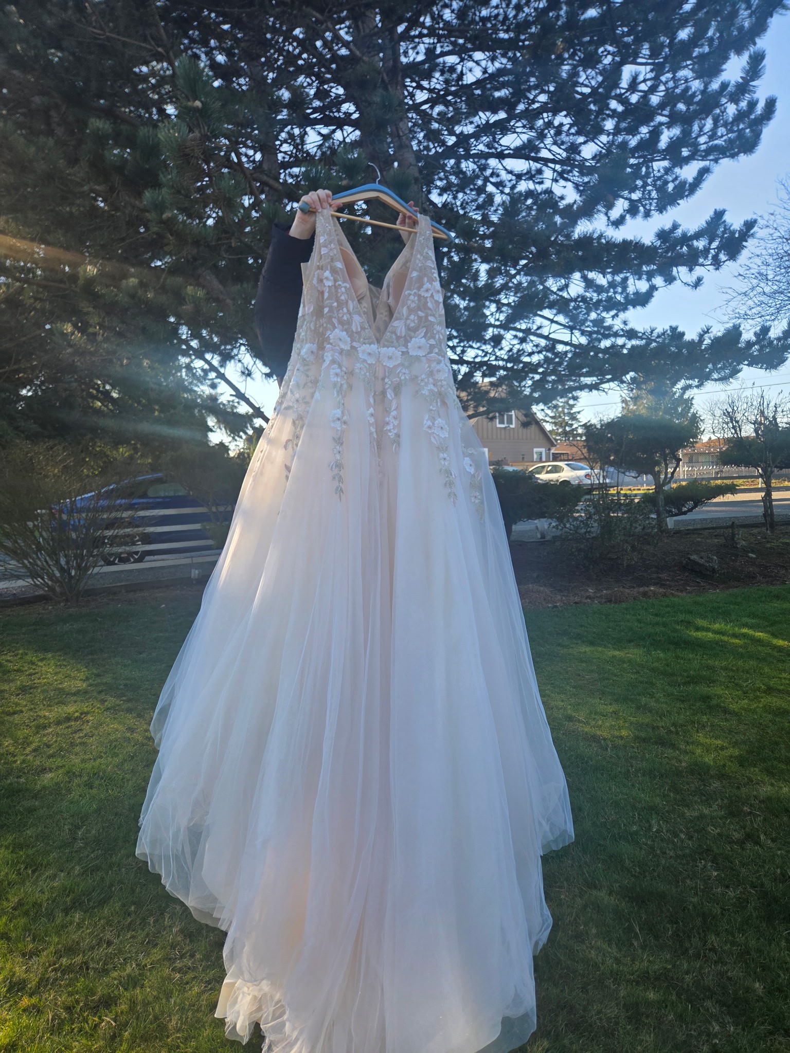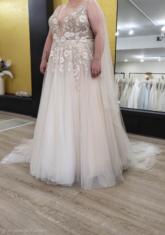 Worn once on my unforgettable wedding day, this size 28 gown made me feel like a true princess. I am now looking to pass it on to another bride-to-be who will cherish it just as much as I did. Make this magical dress a part of your love story, and feel the joy it brings!