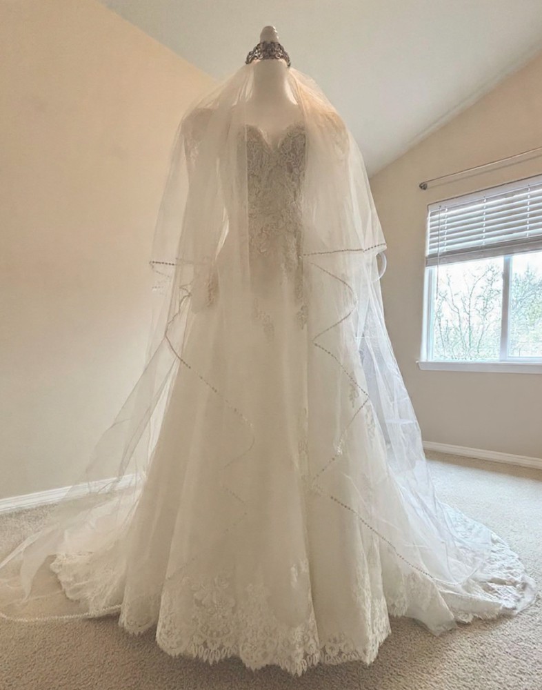 Original retail price: $3,718 (dress, veil, and crown).