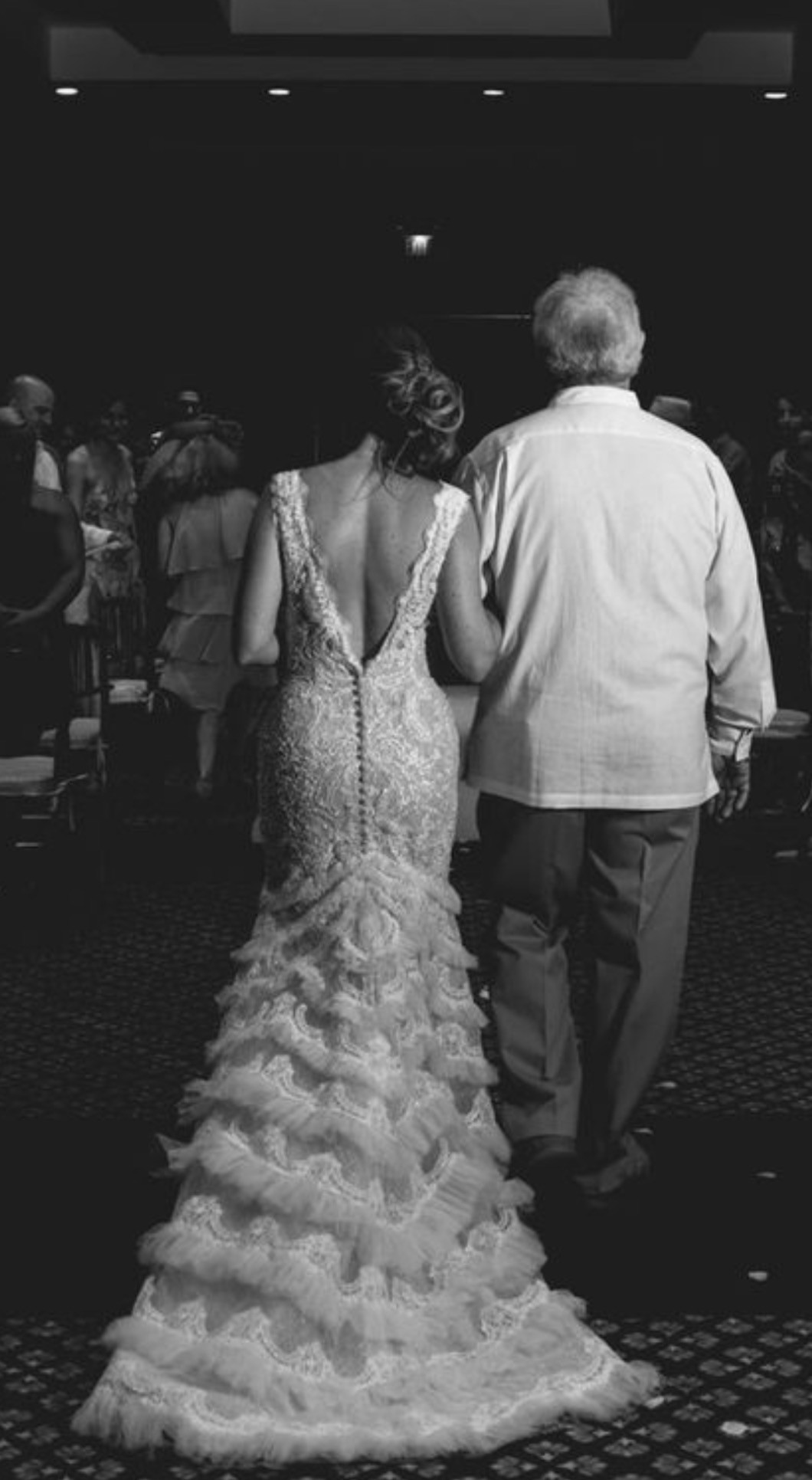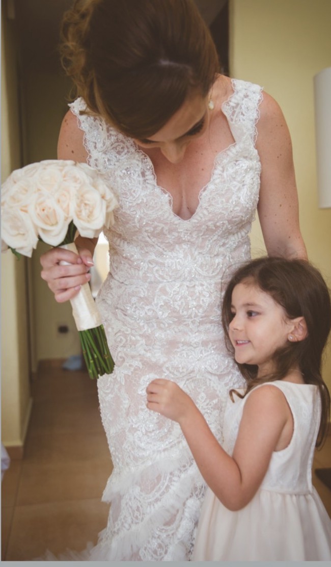 This stunning Galina Signature dress truly made my wedding day feel magical. In a beautiful cream hue, the trumpet silhouette perfectly accentuated my figure, giving me the confidence I needed to walk down the aisle. The V-neckline and V-back added just the right amount of elegance and allure, while the delicate straps provided comfort and support throughout the festivities.