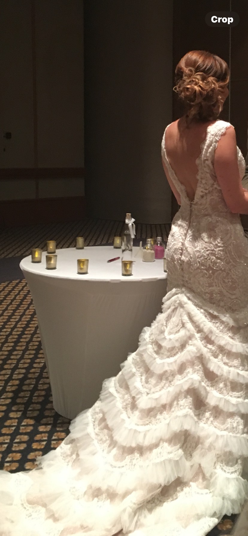Worn only once, this size 8 dress is in excellent condition, just as I received it. It's ready to make another bride's dream wedding a reality, and I hope it brings as much joy and love to you as it did to me. If you're looking for a timeless and enchanting gown that will leave an unforgettable impression, this is the one for you. Let this dress create your own fairytale moment!