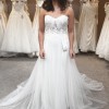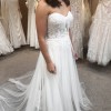 This Justin Alexander 55179 is a soft and romantic dress, with a beautifully fitted lace bodice contrasting with the soft flowing skirt and train. This light and airy dress would be perfect for a destination wedding