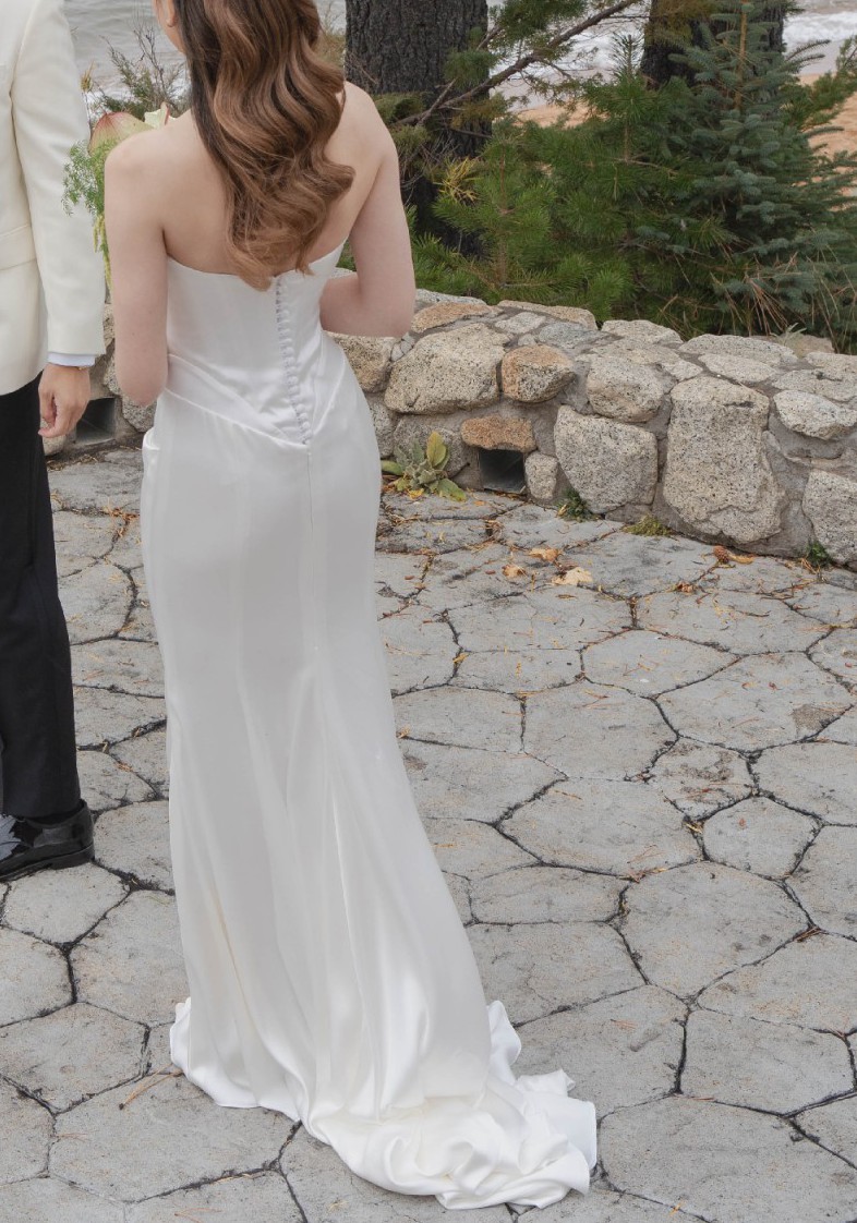 Worn once. Water marking on the inner lining at the hem from rain on the day — not visible when worn and light marks to the exterior.