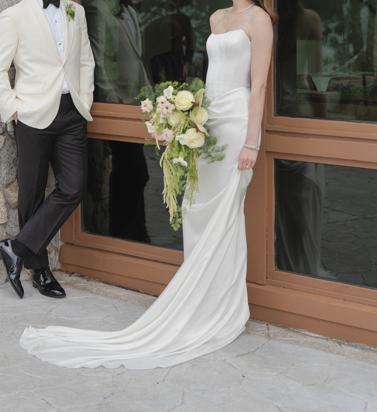 - A few inches off of the bottom of the dress
