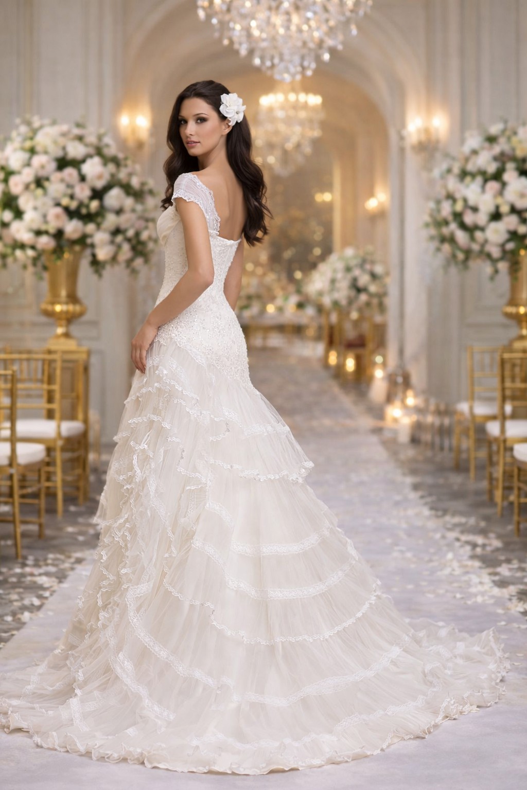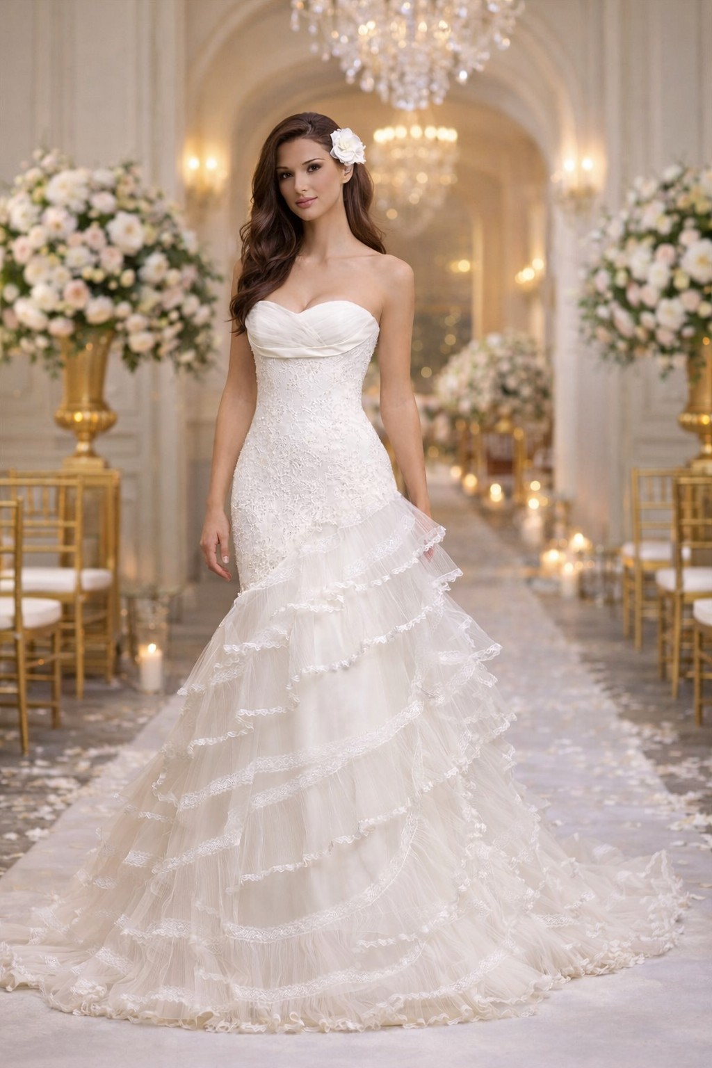 With a floor-length cut, this dress ensures you will make a breathtaking impact when you walk into any space. Step into a fairy tale as you wear this extraordinary wedding dress, destined to be cherished in photographs and memories for years to come. Embrace the magic of your love story in this exquisite creation.