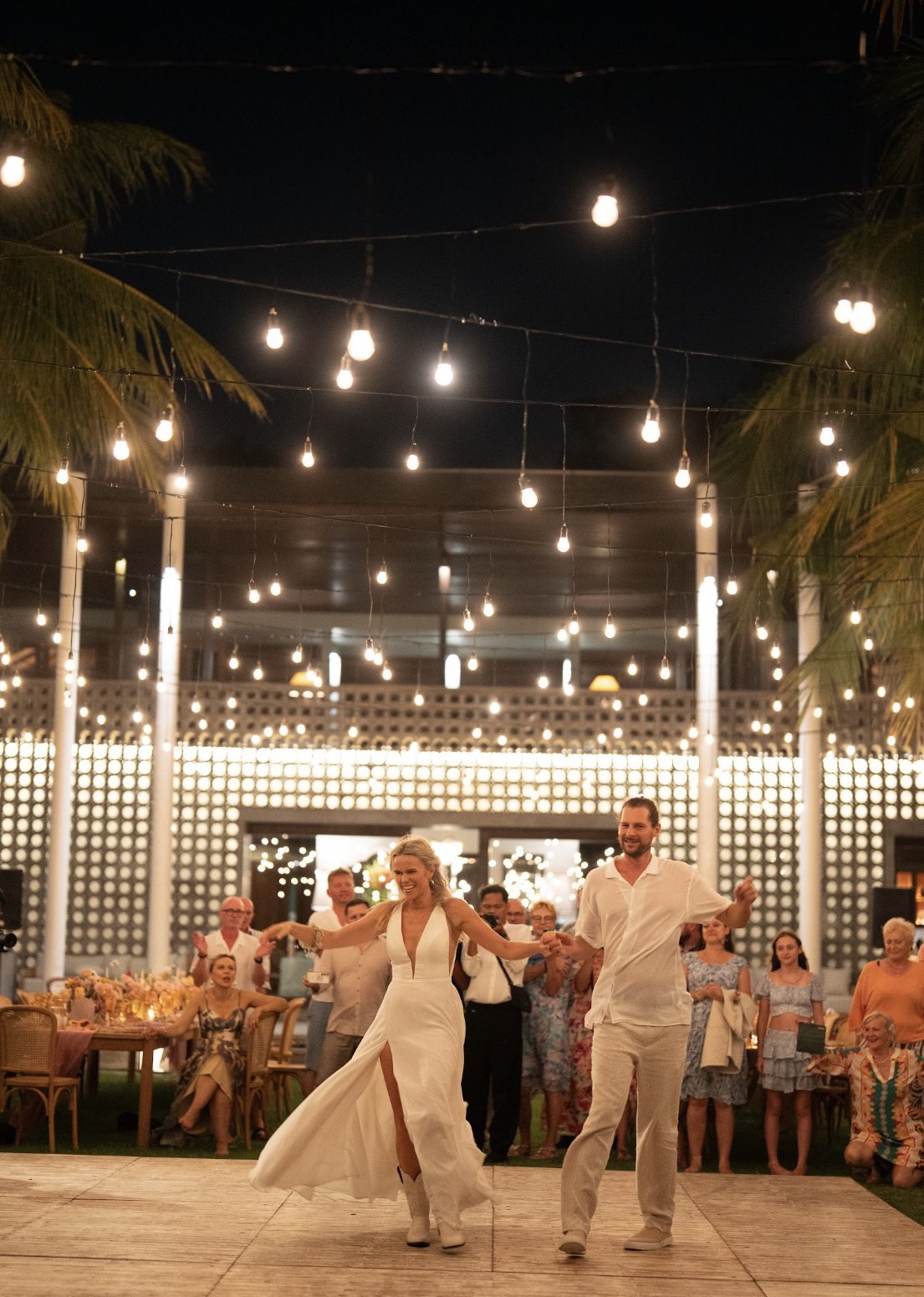 This stunning gown is the perfect blend of sexy and classic. It’s beautifully lightweight, breathable, incredibly comfortable, and so easy to dance in — I felt completely free all night long. The silhouette is flattering and timeless, with just the right touch of modern romance.