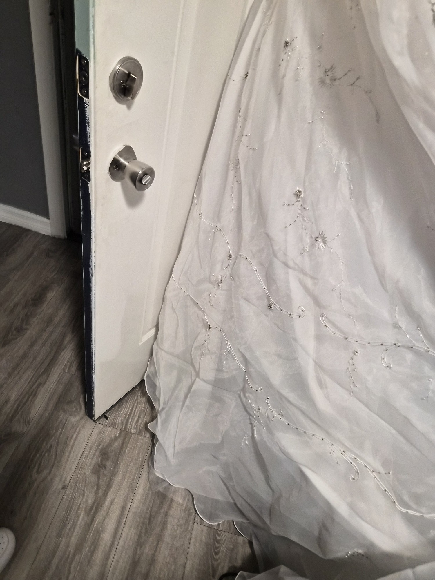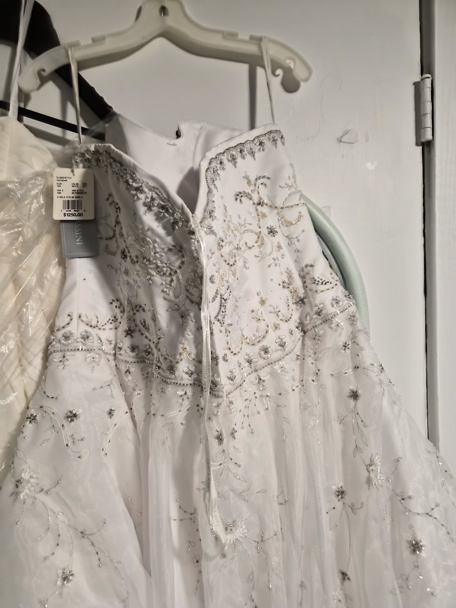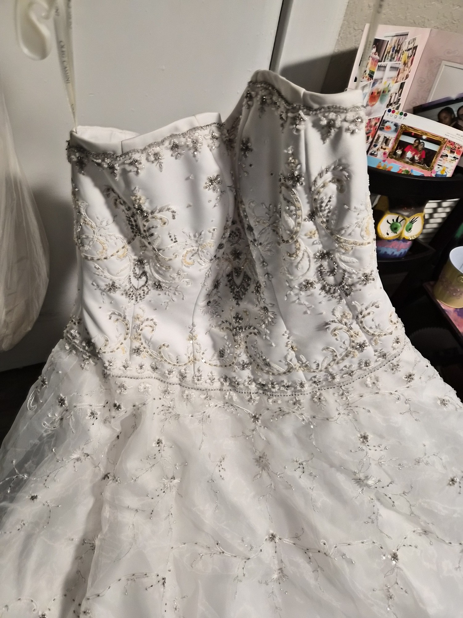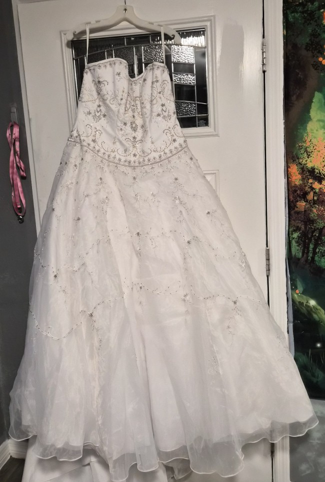Size 14 offers both comfort and elegance, making it ideal for a day filled with joy and celebration. With every twirl, the beauty of this dress unfolds, ensuring you will shine brightly as you create unforgettable memories. Say "I do" in this exquisite Oleg Cassini masterpiece, and let your love story unfold in the most magical way.