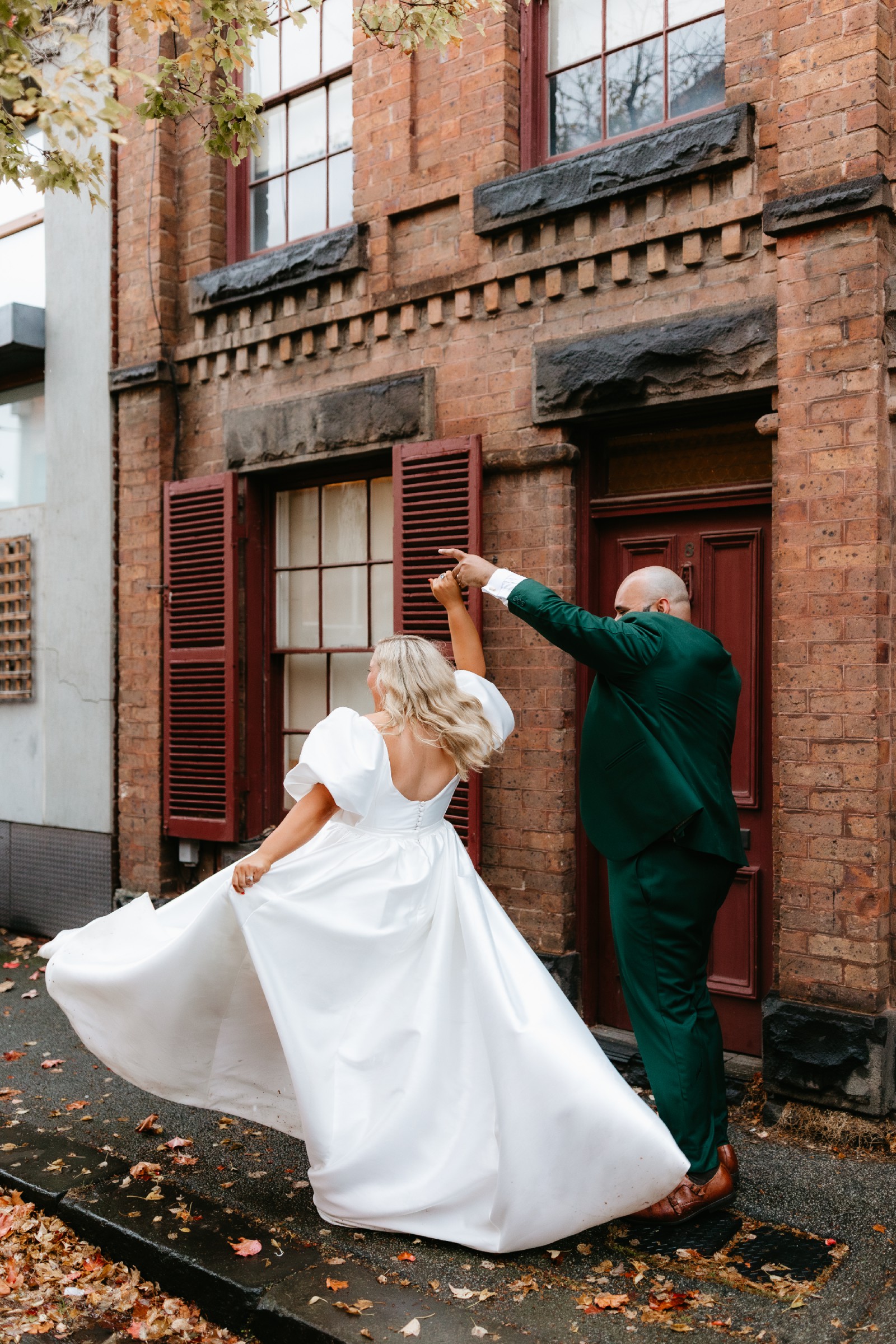 This Mini A-Line gown is the perfect way to ensure you feel like a princess with the drama of a full skirt followed by the fun mini for the reception. With a super fitted U-shape bodice designed to beautifully display your décolletage while the dramatic bubble sleeves and mini skirt (complete with pockets) make this gown fun, chic, and oh-so feminine!
