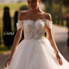 Please note: the off-shoulder sleeves are removable, allowing the gown to be worn as a strapless design for two distinct bridal looks in one.
