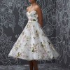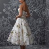 This Sweetpea Tea-Length gown by Romantica embodies an enchanting blend of romance and elegance, making it the perfect choice for a bride who dreams of a fairytale wedding. Its sweetheart neckline and floral flowing soft fabric.