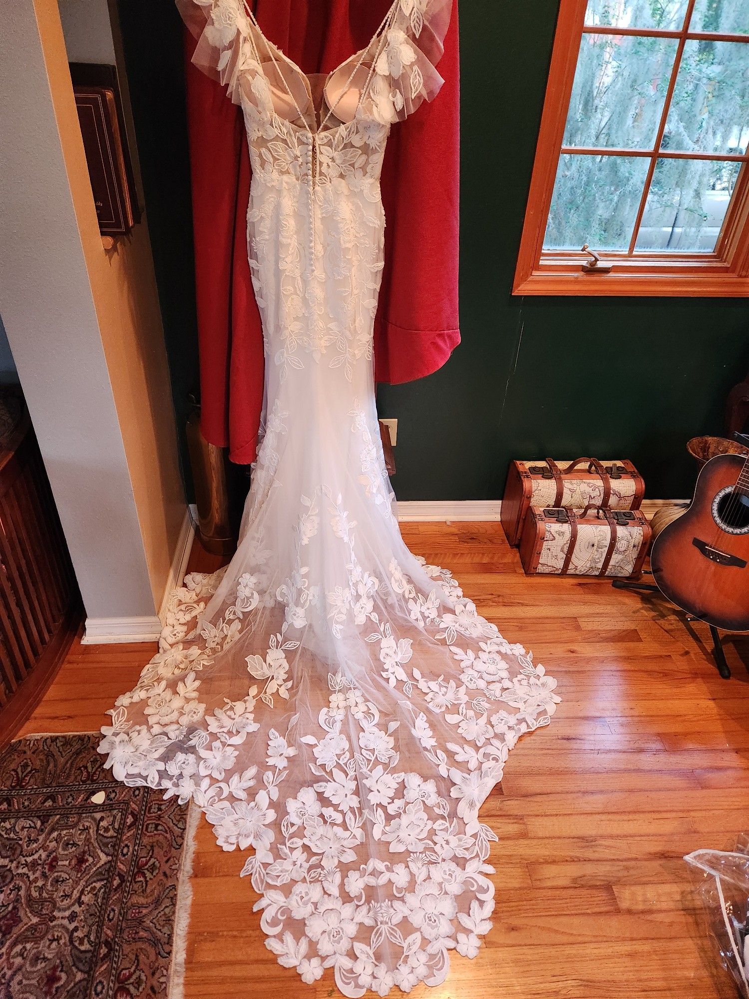 Crafted for size 4, this dress is perfect for the bride who wants to make a lasting impression on her special day. Embrace the romance, elegance, and beauty with this exquisite wedding dress that promises to create unforgettable memories as you say “I do.”