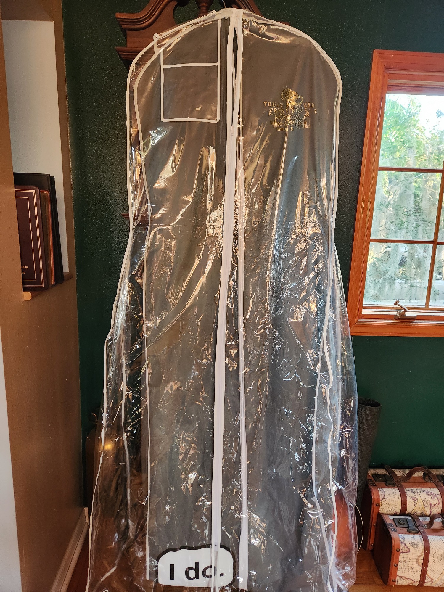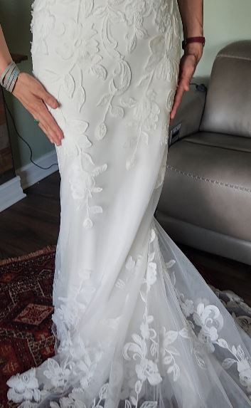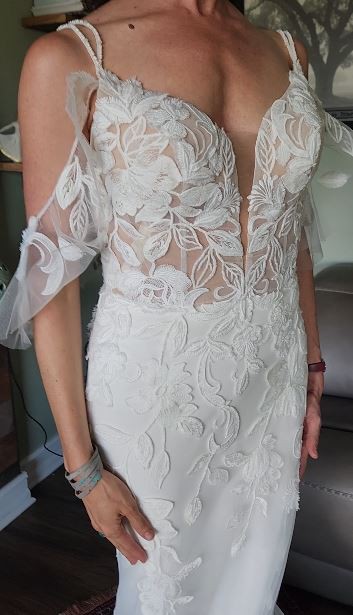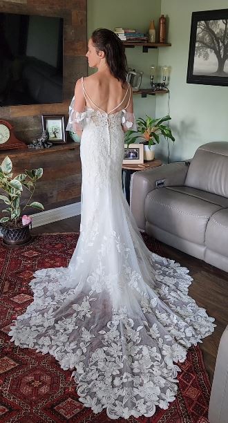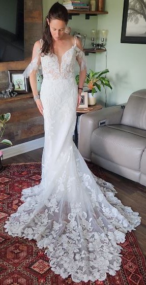 The dress was bought for my sisters wedding which never happened. The pictures don't do it justice as it was not made for my body type, but my sister was unable to put it on so the modelling fell to me. It is a stunning dress and should be used!
