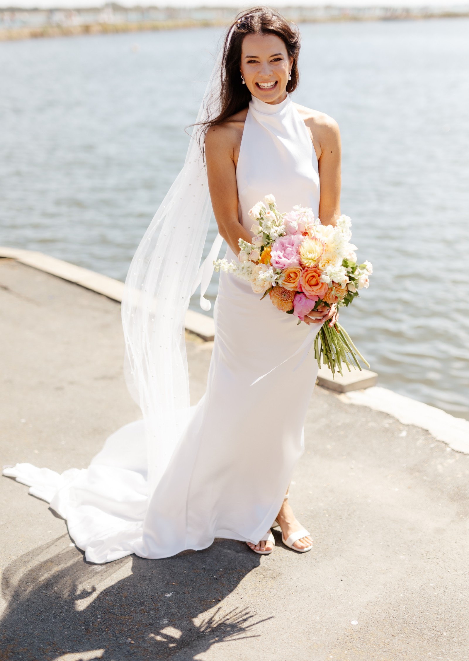 This dress is comfortable, flattering and photographs beautifully — perfect for a modern, romantic wedding.