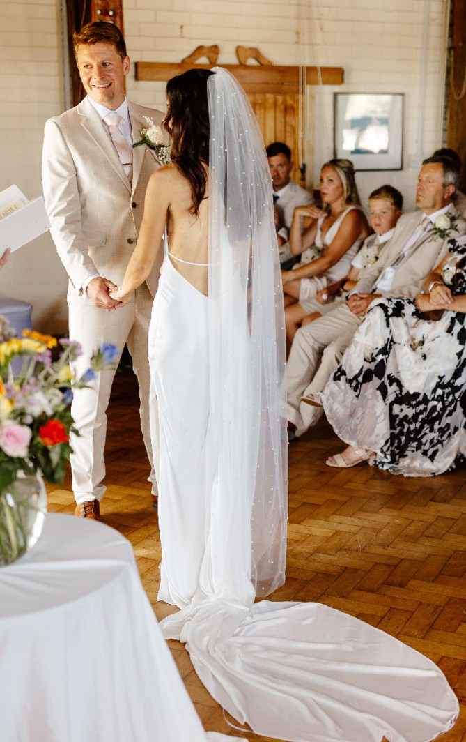 Also included is a beautiful single-tier pearl veil (purchased from Etsy), with a discreet hair clip added for secure and seamless wear.