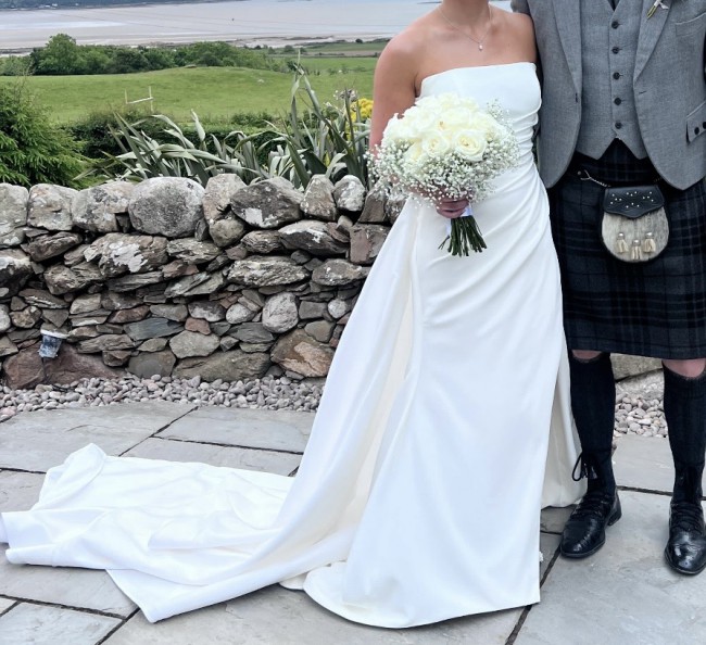 This dress is a size 10 and has been carefully dry cleaned and preserved, ready to create more beautiful memories for another bride.