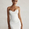 Huntleigh by Jane Hill, is a modern wedding dress designed with a structured bodice and soft draping for a refined bridal silhouette.