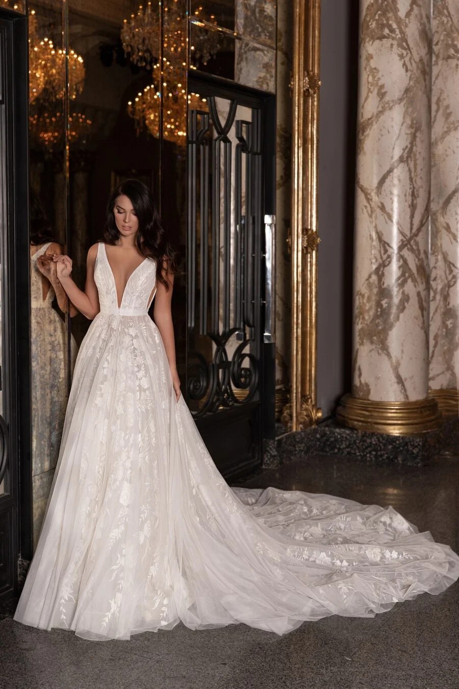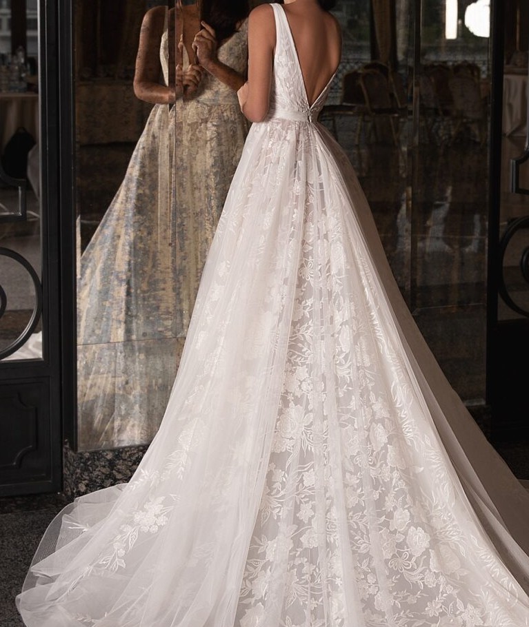 Gorgeous backless deep V dress. Only worn in bridal photos due to being left at the altar.