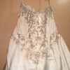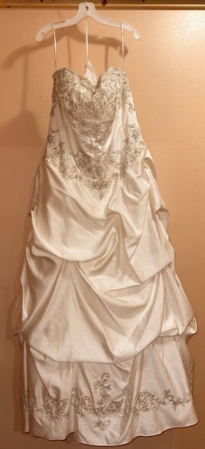 This stunning ballgown by David's Bridal is the embodiment of bridal elegance and romance. The sweetheart neckline beautifully frames the décolletage, giving it a timeless appeal that flatters every bridal figure. Designed in a classic ivory hue, this floor-length masterpiece is accented with delicate crystals and intricate embroidery, ensuring you dazzle as you walk down the aisle.