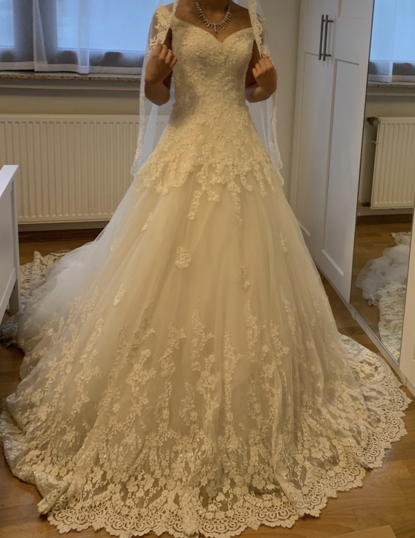 Please note: Only the dress is for sale. The veil is not included.