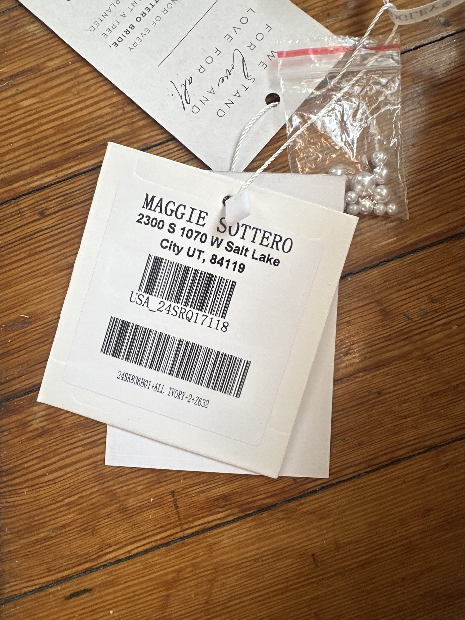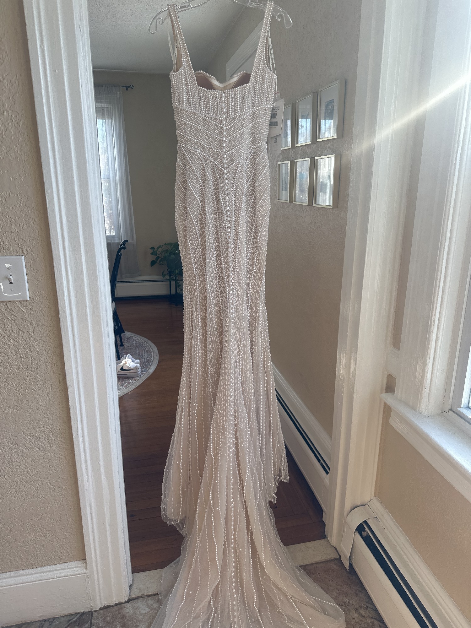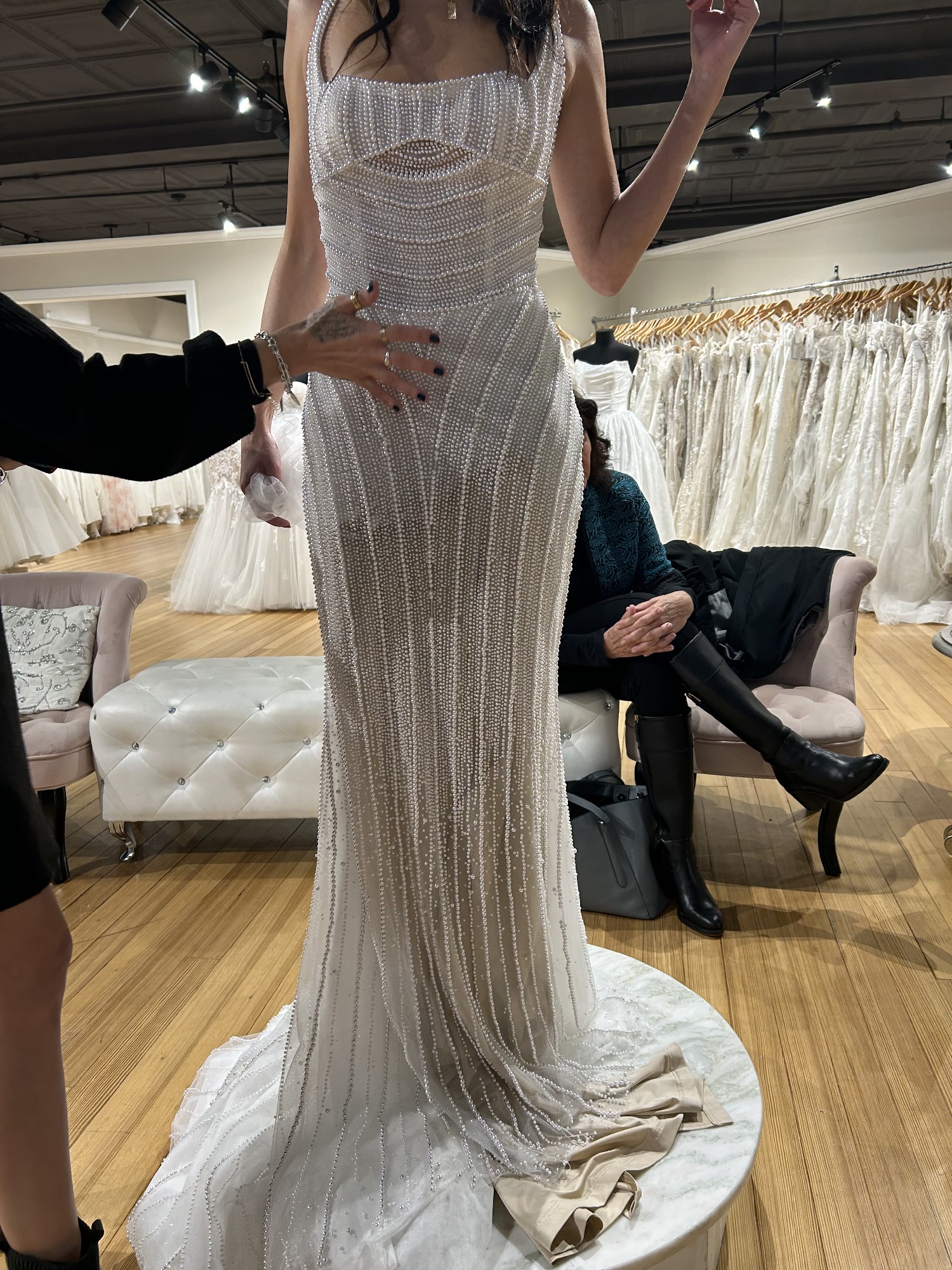 This is the Maggie Sottero Danica dress with a custom nude lining for a more vintage look. I was inspired by a much more expensive dress with pearls. This was for a destination wedding in Spain.