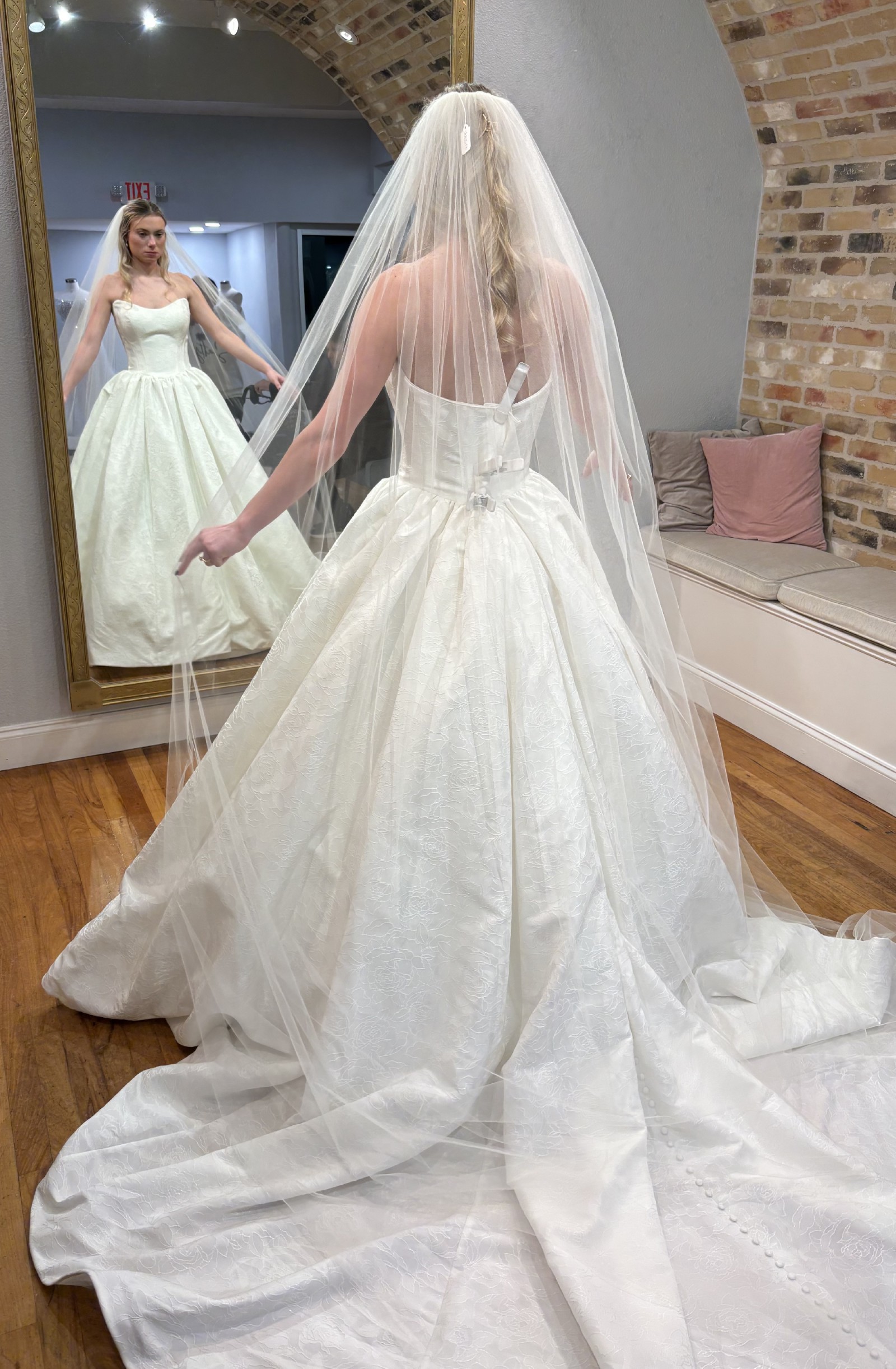 Never worn, never altered, and ready to be tailored to your perfect fit. Veil not included.