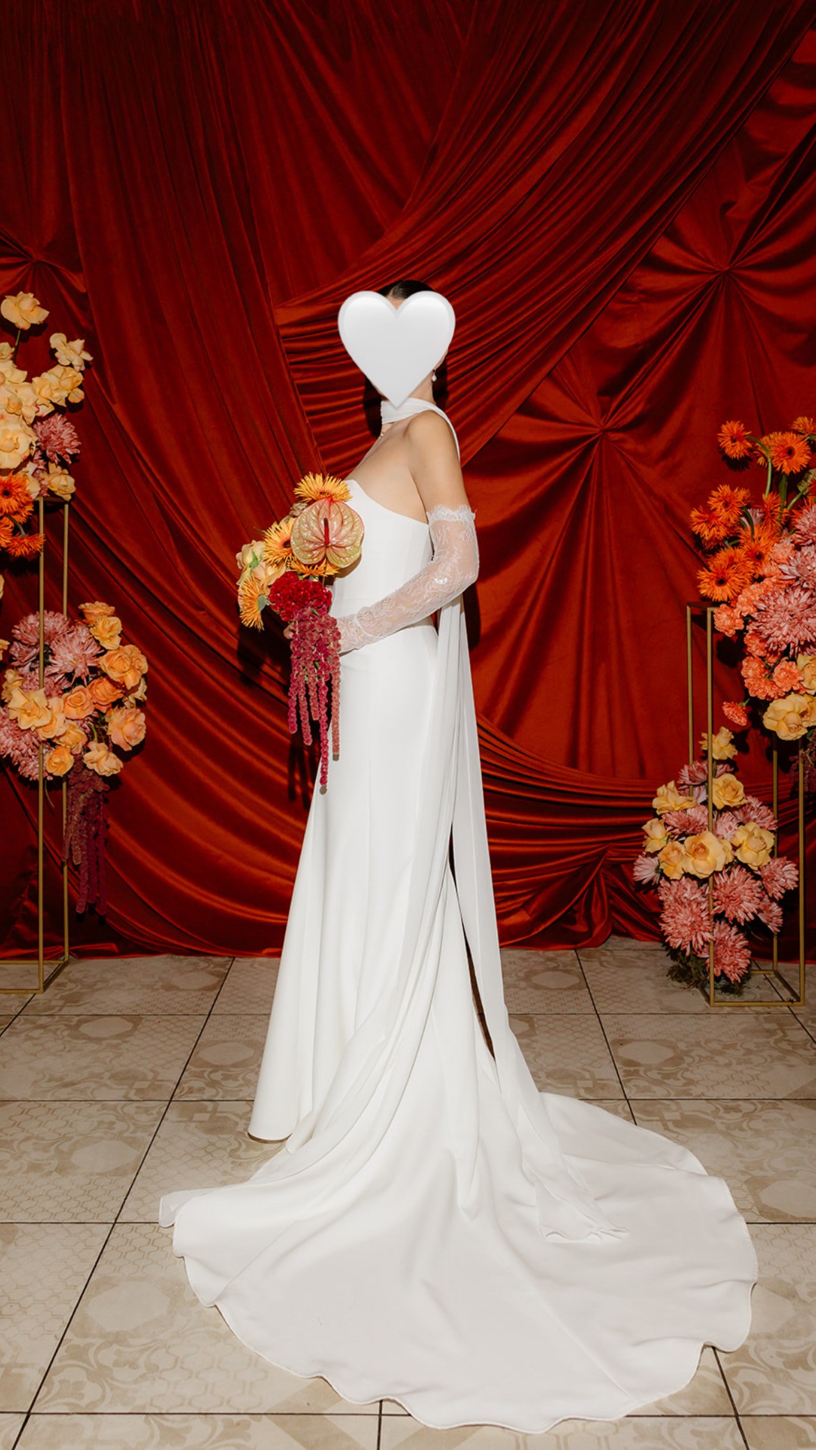 • Worn with 2” heels (hemmed to just graze the floor)