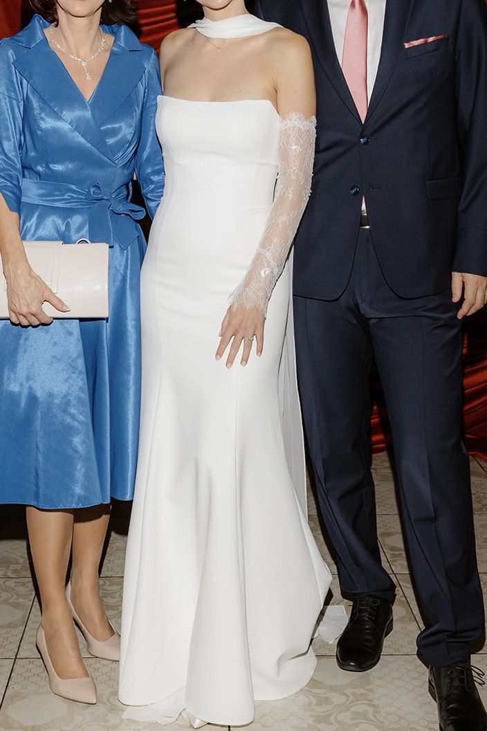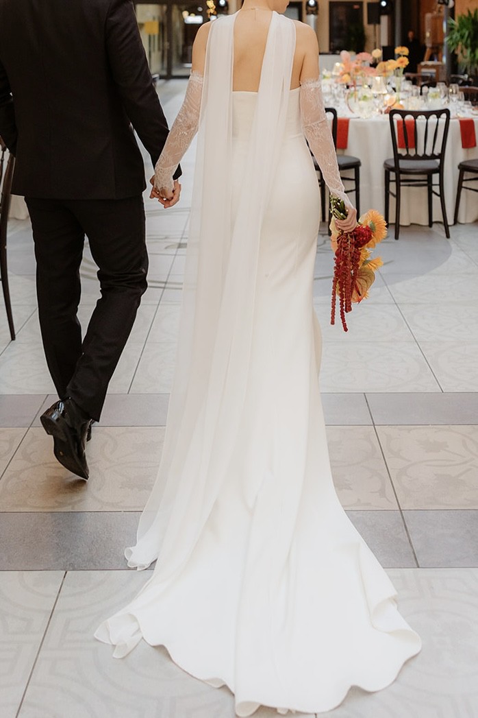 Selling my Perry crepe gown by Jenny Yoo, purchased from Anthropologie Weddings.