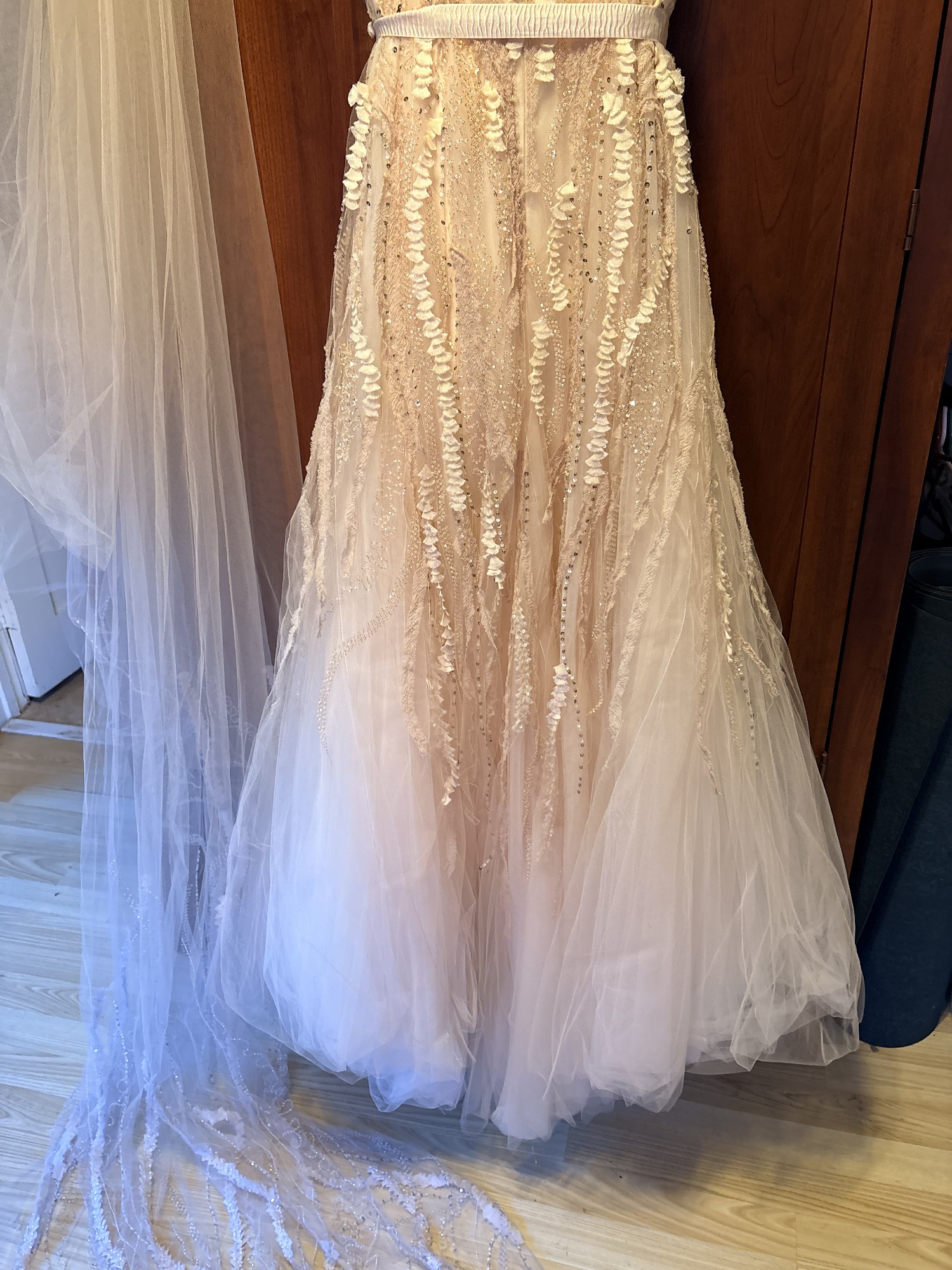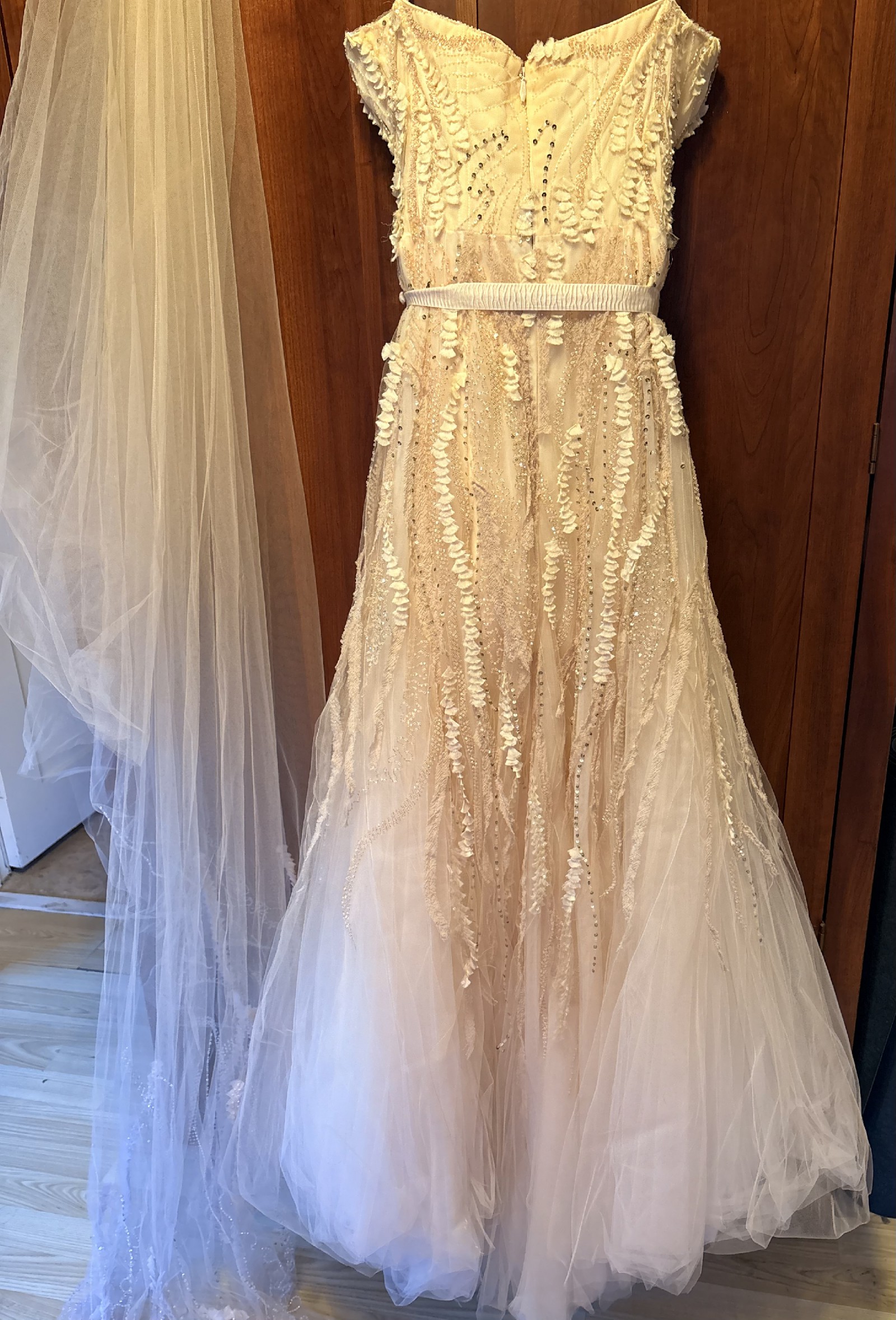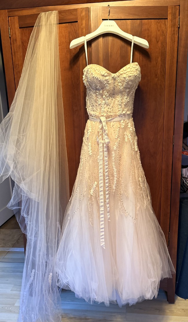 Breathing Candy dress in blush, long matching veil included. Label is 6- altered to fit 0/2.