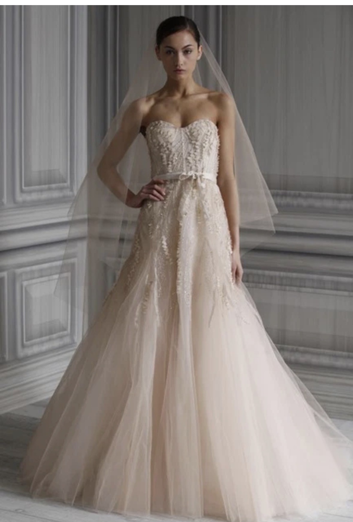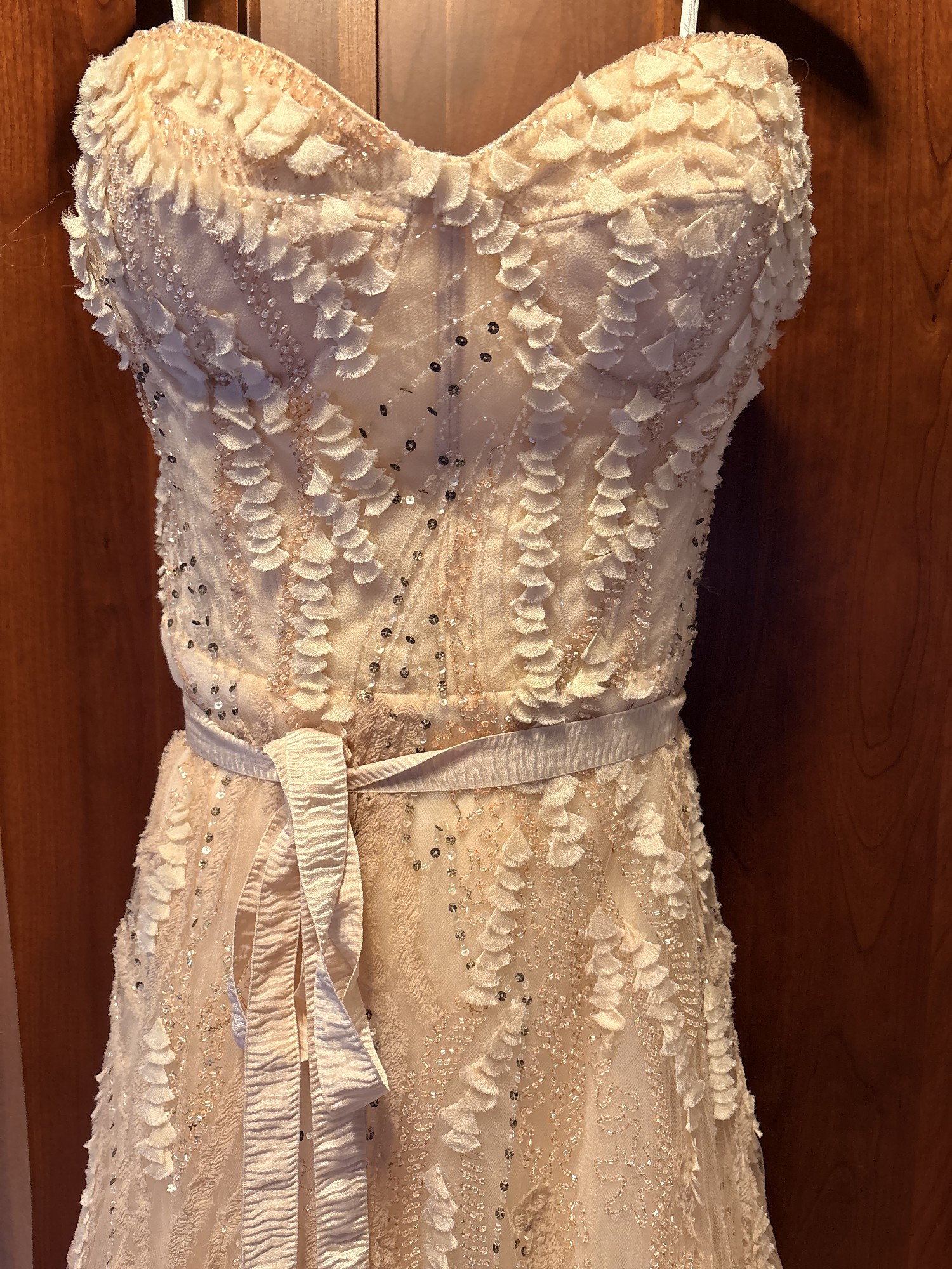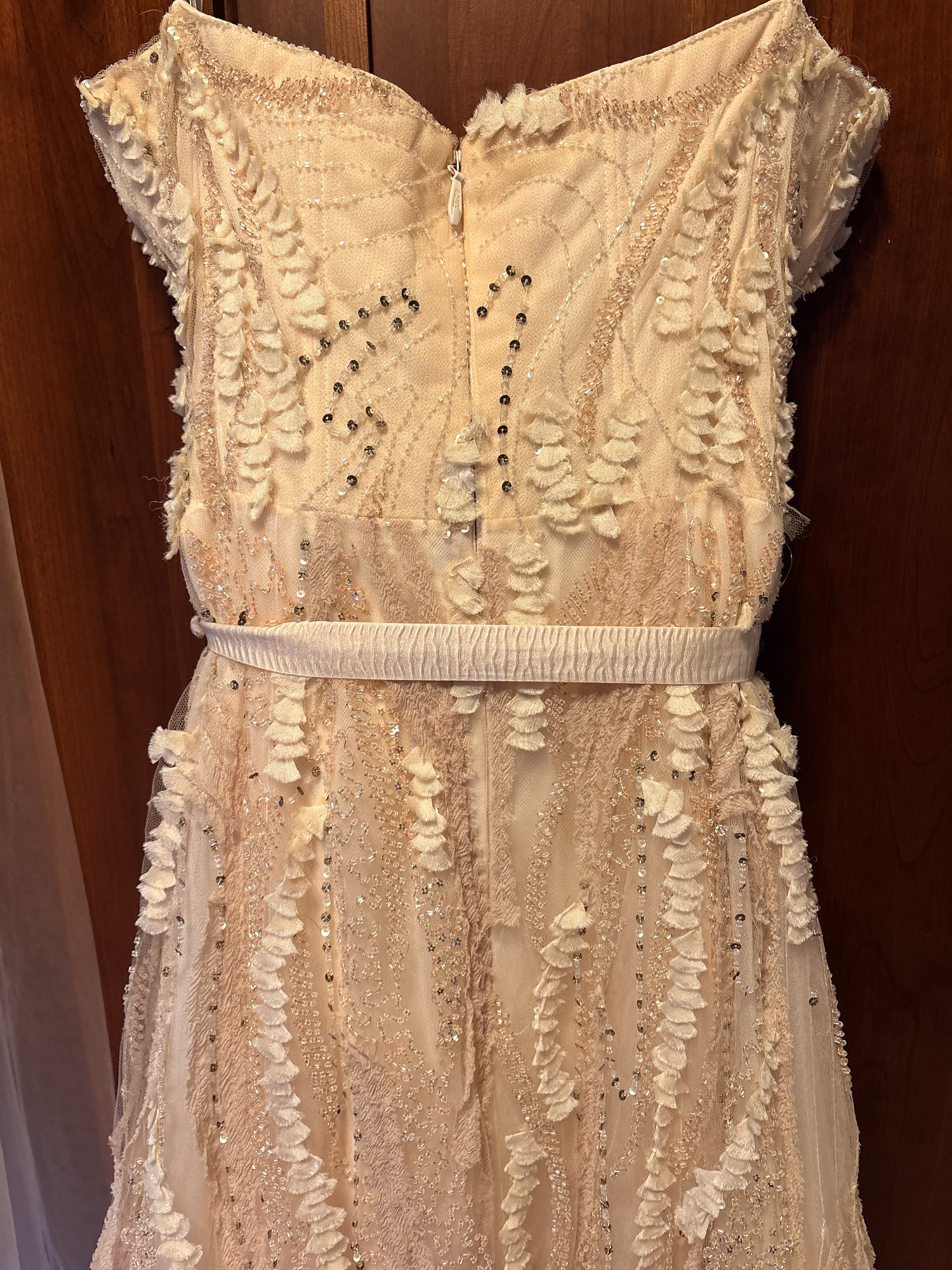 Breathing Candy dress in blush, long matching veil included. Label is 6- altered to fit 0/2.